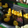 Счастливый утенок: игра для детей от 3 лет, малыши которые больше ни где не могут себя проявить в силу своего роста и не умения, это как раз для них, хотя и взрослые играют с удовольствием. Игра на везение. Удочкой или руками ловим одну из 16 уток, смотрим на брюшко, если цвет желтый, то повезло-большой приз, если цвет красный-средний приз, синий цвет - поощрительный приз. Среди уток 1 желтый цвет, 4 красных и 11 синих, так что все шансы в вашу пользу. Аттракцион красивый, под заднюю стену используется кокосовая сетка, бассейн, фонтан, натуральное дерево, подсветка. В 2013г. для желающих была разработана верхняя вывеска; использована ламинация, увеличен размер вывески, изменен дизайн, добавлено количество кабошонов Итальянского производства, LED лампы RGB высокого качества с нанесением силикона для уверенного использования аттракциона на улице в любую погоду и времени года. Лампы и кабошоны прозрачного цвета, однако вывеска светится всеми цветами радуги не повторяя комбинации в течении 7-10 мин. Это уникальная разработка наших программистов.