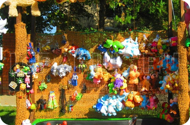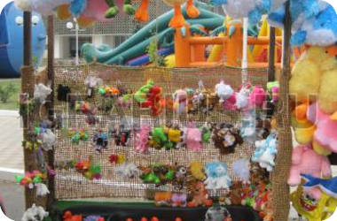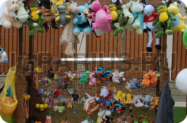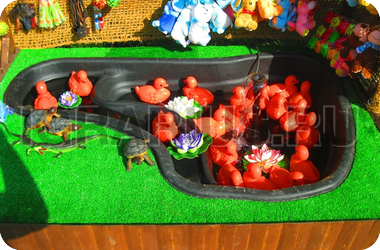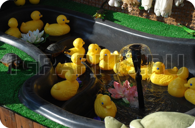 Счастливый утенок: игра для детей от 3 лет, малыши которые больше ни где не могут себя проявить в силу своего роста и не умения, это как раз для них, хотя и взрослые играют с удовольствием. Игра на везение. Удочкой или руками ловим одну из 16 уток, смотрим на брюшко, если цвет желтый, то повезло-большой приз, если цвет красный-средний приз, синий цвет - поощрительный приз. Среди уток 1 желтый цвет, 4 красных и 11 синих, так что все шансы в вашу пользу. Аттракцион красивый, под заднюю стену используется кокосовая сетка, бассейн, фонтан, натуральное дерево, подсветка. В 2013г. для желающих была разработана верхняя вывеска; использована ламинация, увеличен размер вывески, изменен дизайн, добавлено количество кабошонов Итальянского производства, LED лампы RGB высокого качества с нанесением силикона для уверенного использования аттракциона на улице в любую погоду и времени года. Лампы и кабошоны прозрачного цвета, однако вывеска светится всеми цветами радуги не повторяя комбинации в течении 7-10 мин. Это уникальная разработка наших программистов.