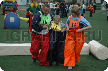Весёлые старты - классика летних и спортивных праздников! У нас в арсенале множество оборудования, которое сделает их ещё ярче и позитивнее. Например, эстафетные штаны-тройка! Вам предстоит забраться в них втроём, пробежать до финиша и вернуться обратно, не упав! Хотя можно придумать свои правила и устроить забег с самым эффектным падением на финише. Эстафетные штаны-тройка сгодятся для самых безумных игр и идей!