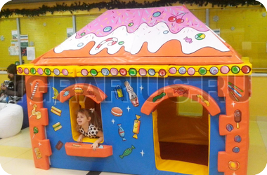Сладкий конфетный Домик - это не только игровая площадка для малышей, но и настоящий модульный конструктор, так как его можно собирать из разных деталей. В этом домике можно играть, прятаться, хранить сладкие подарки и устраивать кукольные чаепития. Его можно установить дома или в торговом центре, во дворе или в офисе и на вашем празднике сразу появится оригинальная игровая зона для ребятишек от 2-х до 7-ми лет.