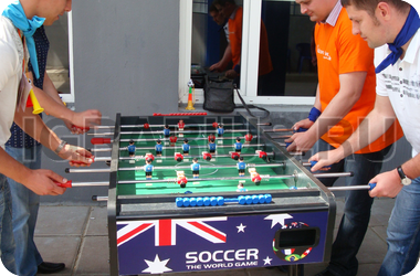 Игра, которую так любили наши папы, вновь становится актуальной! Просим любить и жаловать - на Вашем празднике вновь настольный футбол! Управляйте командой спортсменов в две руки, забивайте голы сопернику и собирайте свою команду болельщиков. Настольный футбол докажет, что любимые игры передаются из поколения в поколение и не выходят из моды. Не верите? Убедитесь сами!