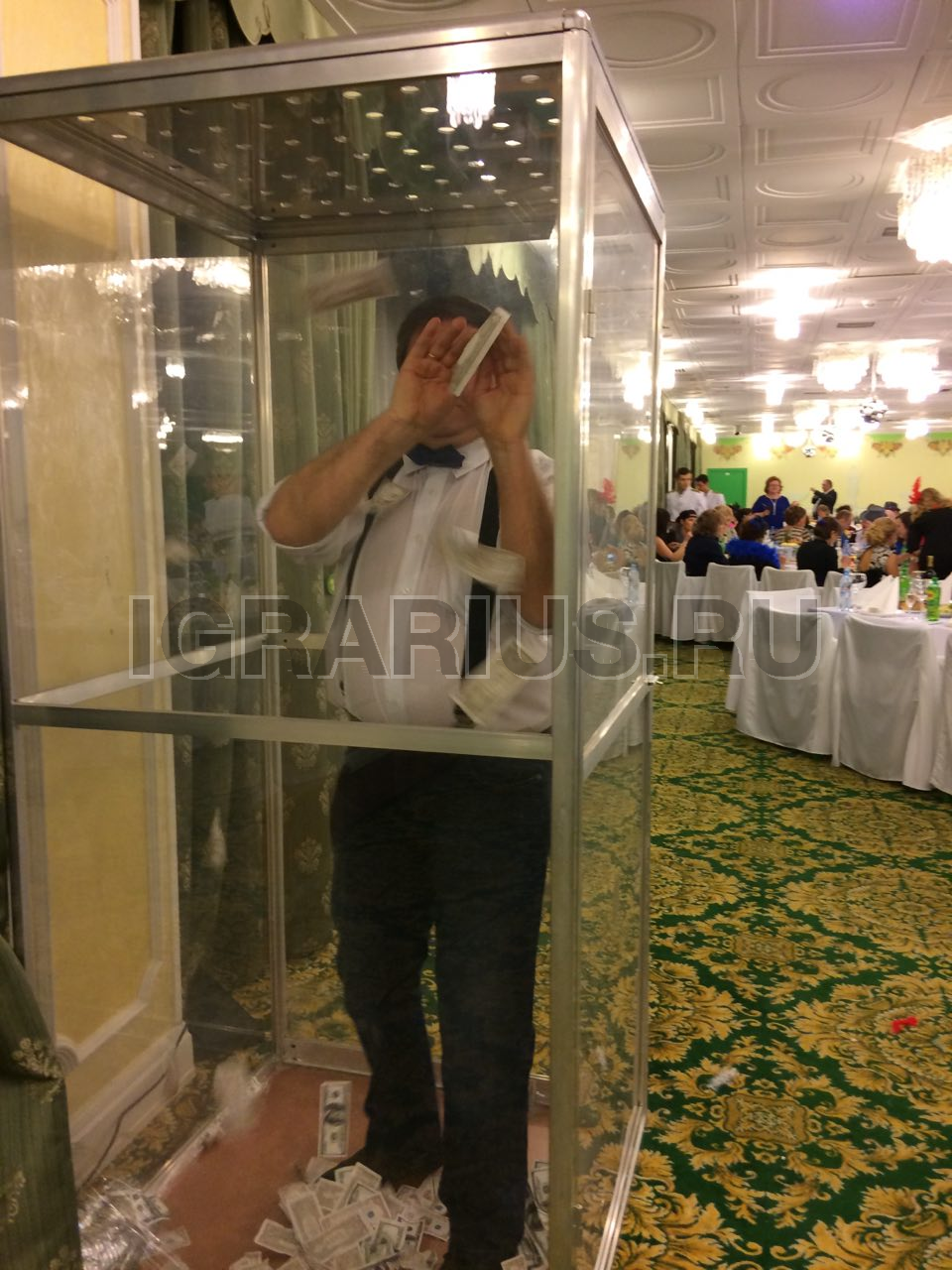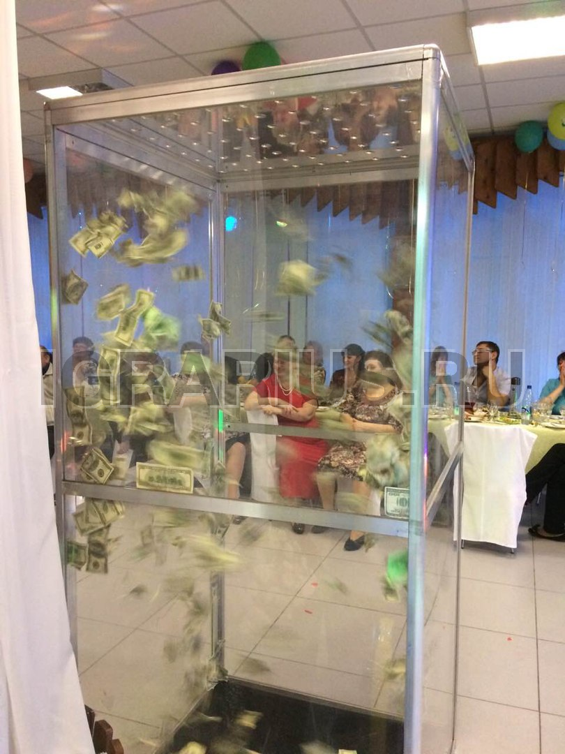 Эксклюзивный аттракцион — денежная кабина или кэш-бокс — подарит яркие эмоции любому участнику организуемого мероприятия: каждый попавший в денежную кабину в мгновение ока может стать миллионером, по крайней мере богаче на целое море позитивных эмоций. Деньги не настоящие, но эмоции яркие! Принцип аттракциона прост: человек входит в кабину, пол которой усыпан банкнотами, имитирующими реальные деньги; вентилятор потоками воздуха разгоняет «деньги» по всей кабине, участнику же требуется за отведенное количество времени поймать как можно больше заветных бумаг! Аттракцион «денежная кабина» можно использовать самостоятельно или в программе. Очень популярно использование кабины в качестве заключительного конкурса командной программы «Форт Бойярд». В любом случаи для гостей праздника «денежная кабина» станет центральным событием всего мероприятия. Основной сценарий - кто больше поймает, особенно интересно, когда запускают бухгалтера или финансиста внутрь, приговаривая, что он должен принести в компанию большой куш. Особенный азарт возникает, когда к ненастоящим деньгам добавляют одну реальную купюру. Кто станет счастливчиком и сорвет куш? Мы желаем вам удачи и отличного настроения!