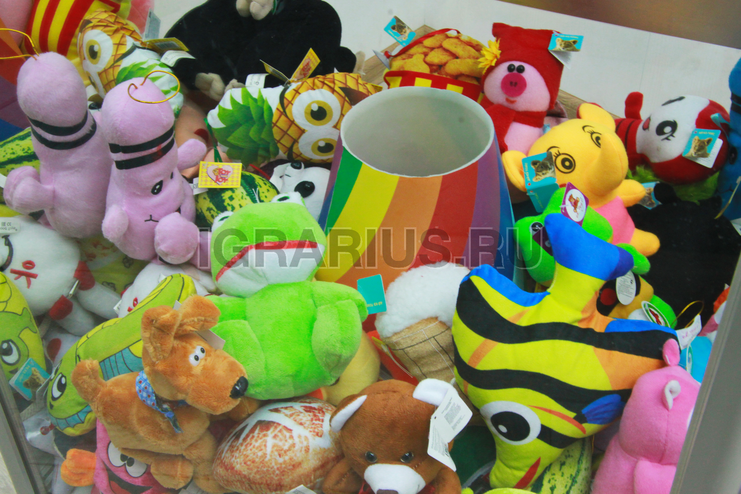 Для выигрыша необходимо попасть мягкой игрушкой в призовую лузу.