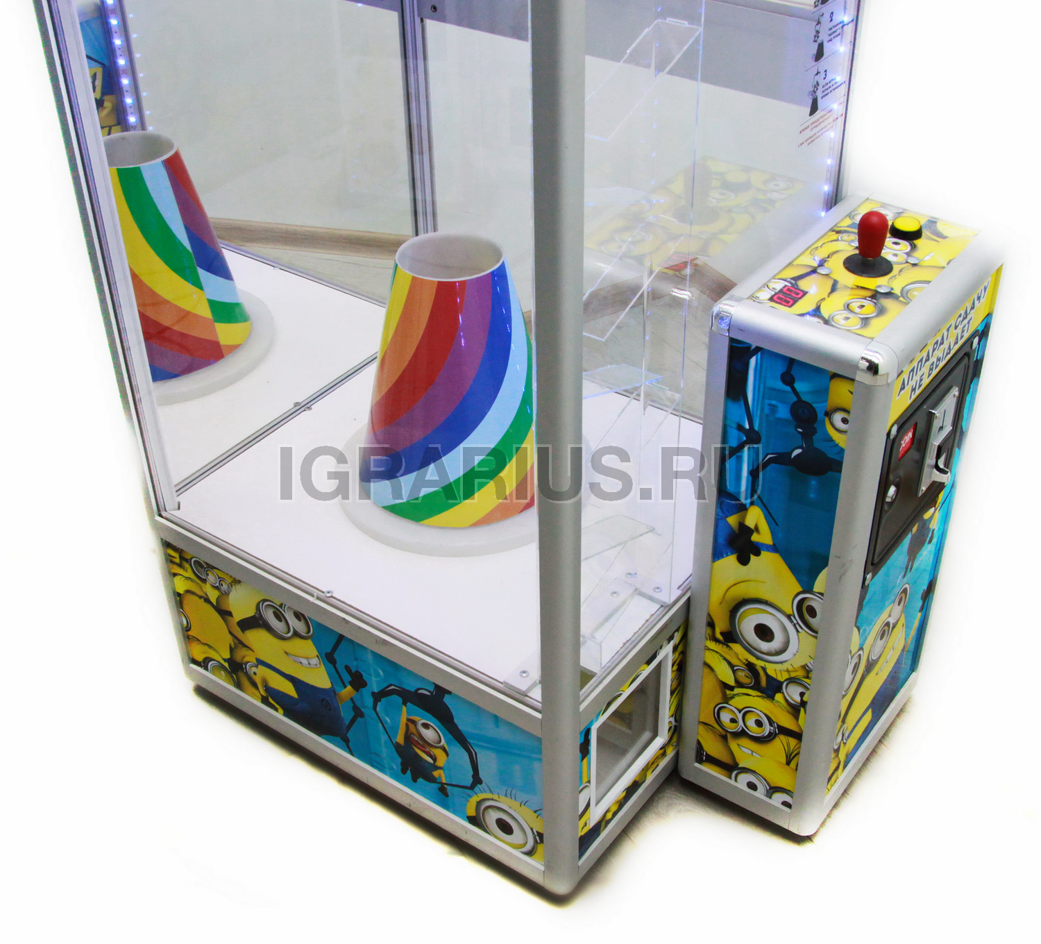 Аппарат имеет основную особенность – развлекает перед продажей: мячик выкатывается по красивому скату, тем самым делая покупку необычной и веселой! Кран-машина с лузой и скатом - это 2 аттракциона в одном!