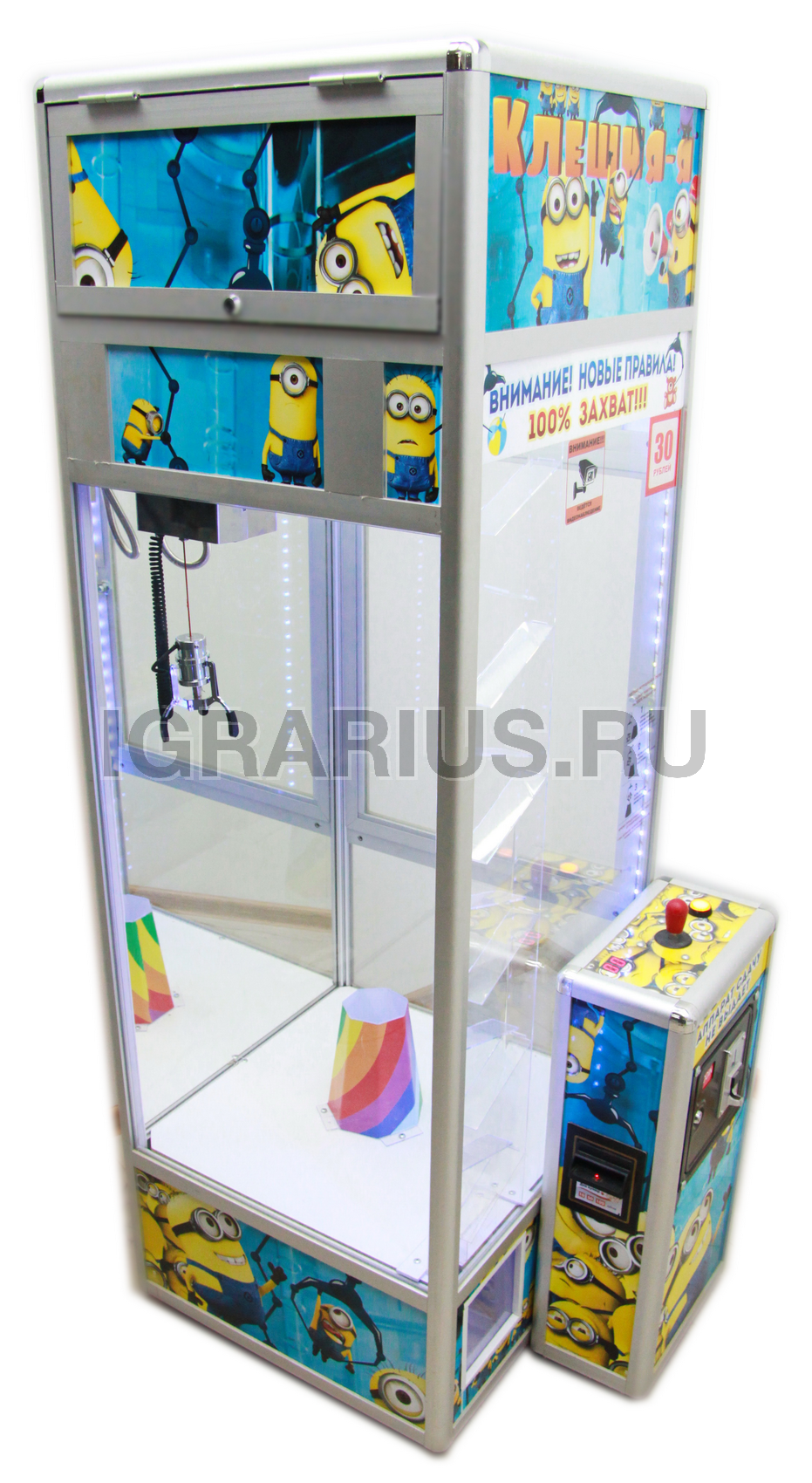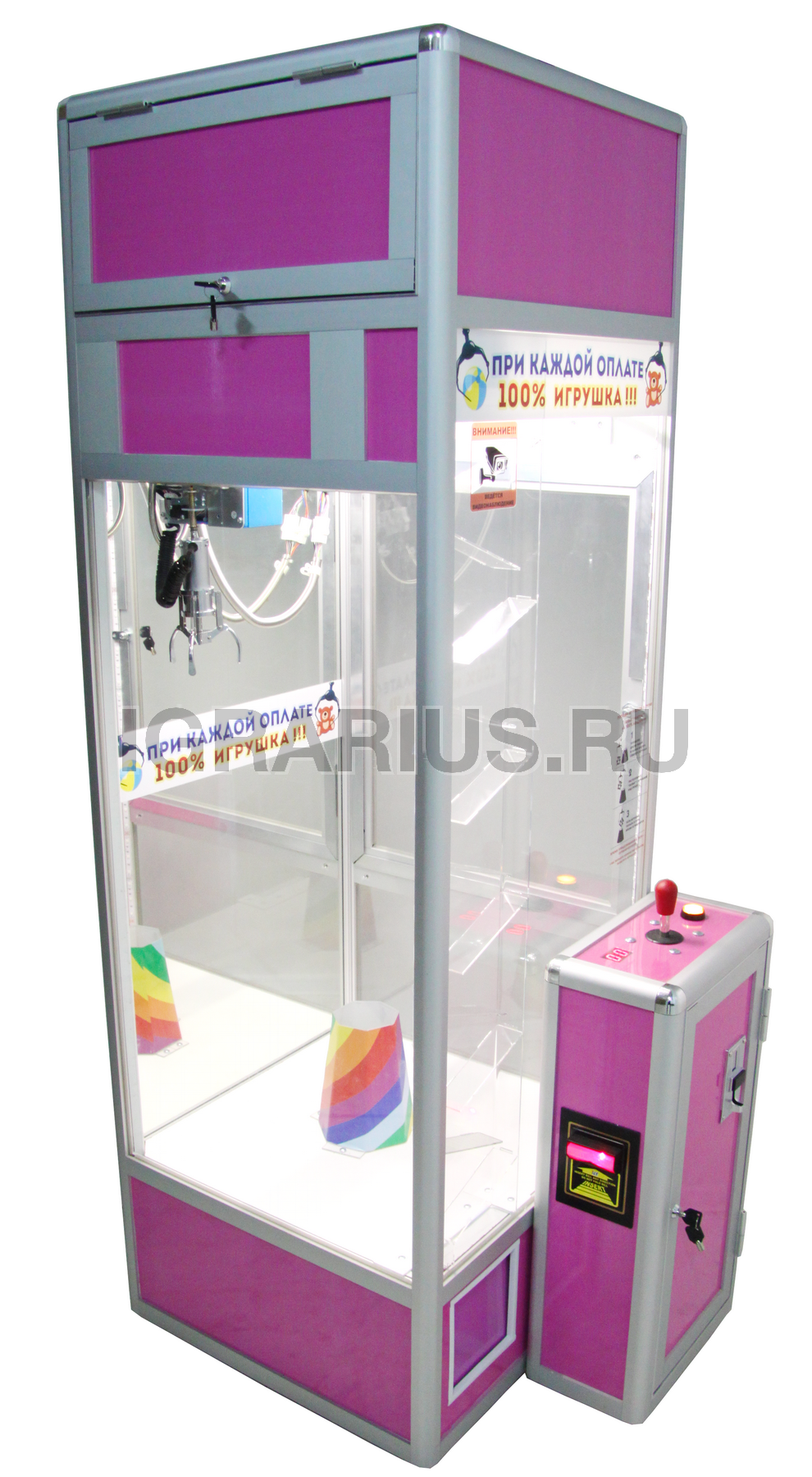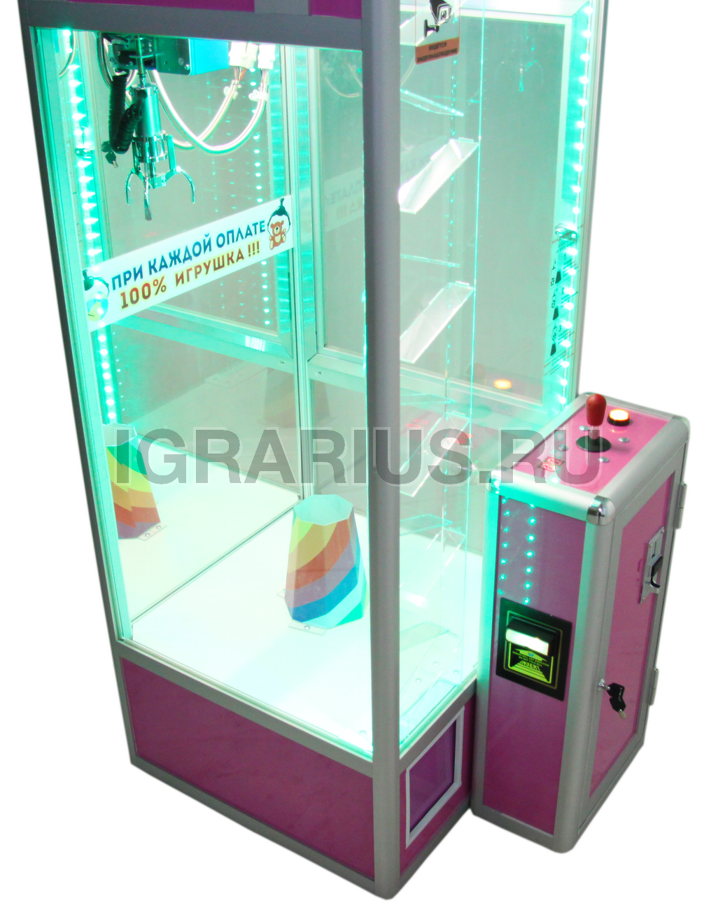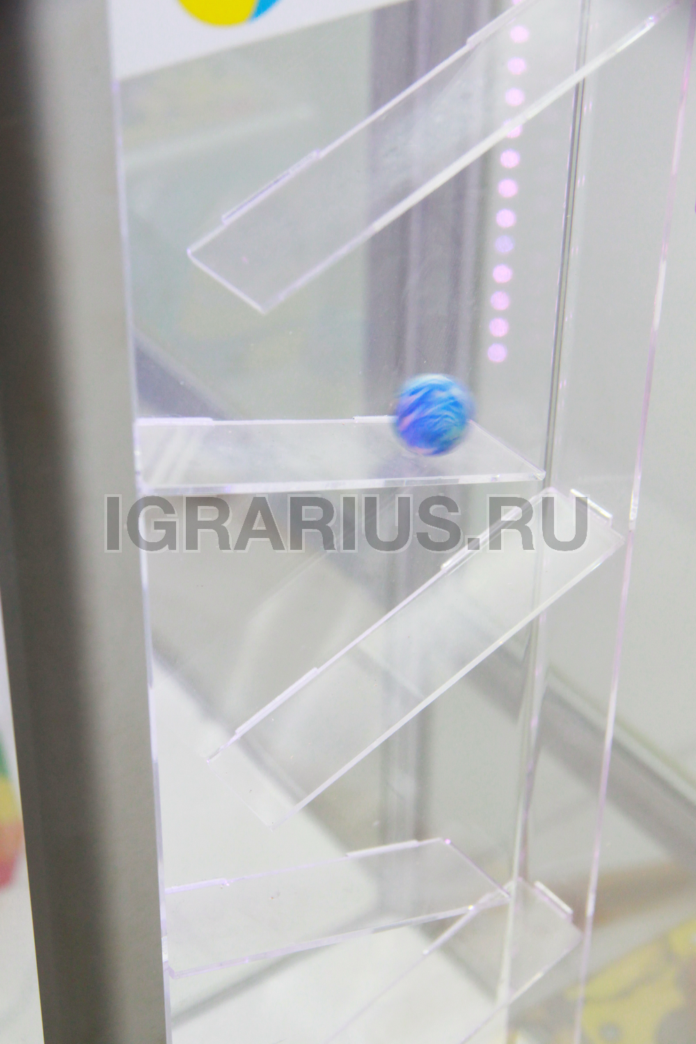 Аппарат имеет основную особенность – развлекает перед продажей: мячик выкатывается по красивому скату, тем самым делая покупку необычной и веселой! Кран-машина с лузой и скатом - это 2 аттракциона в одном!