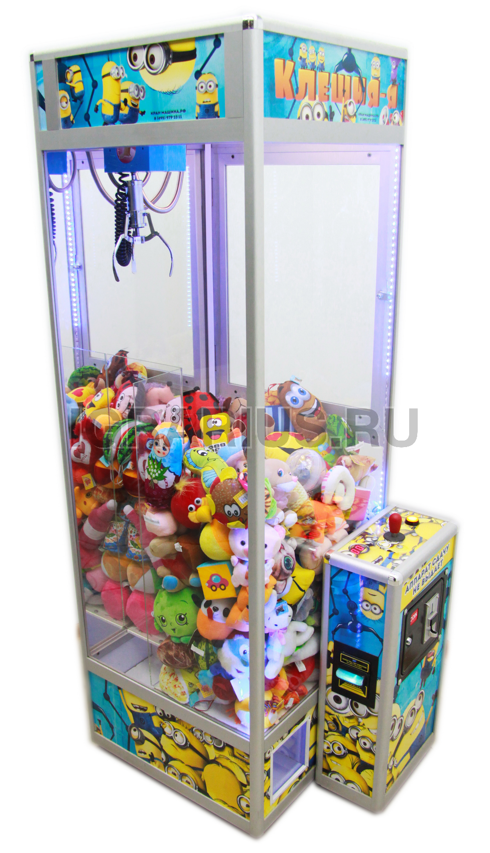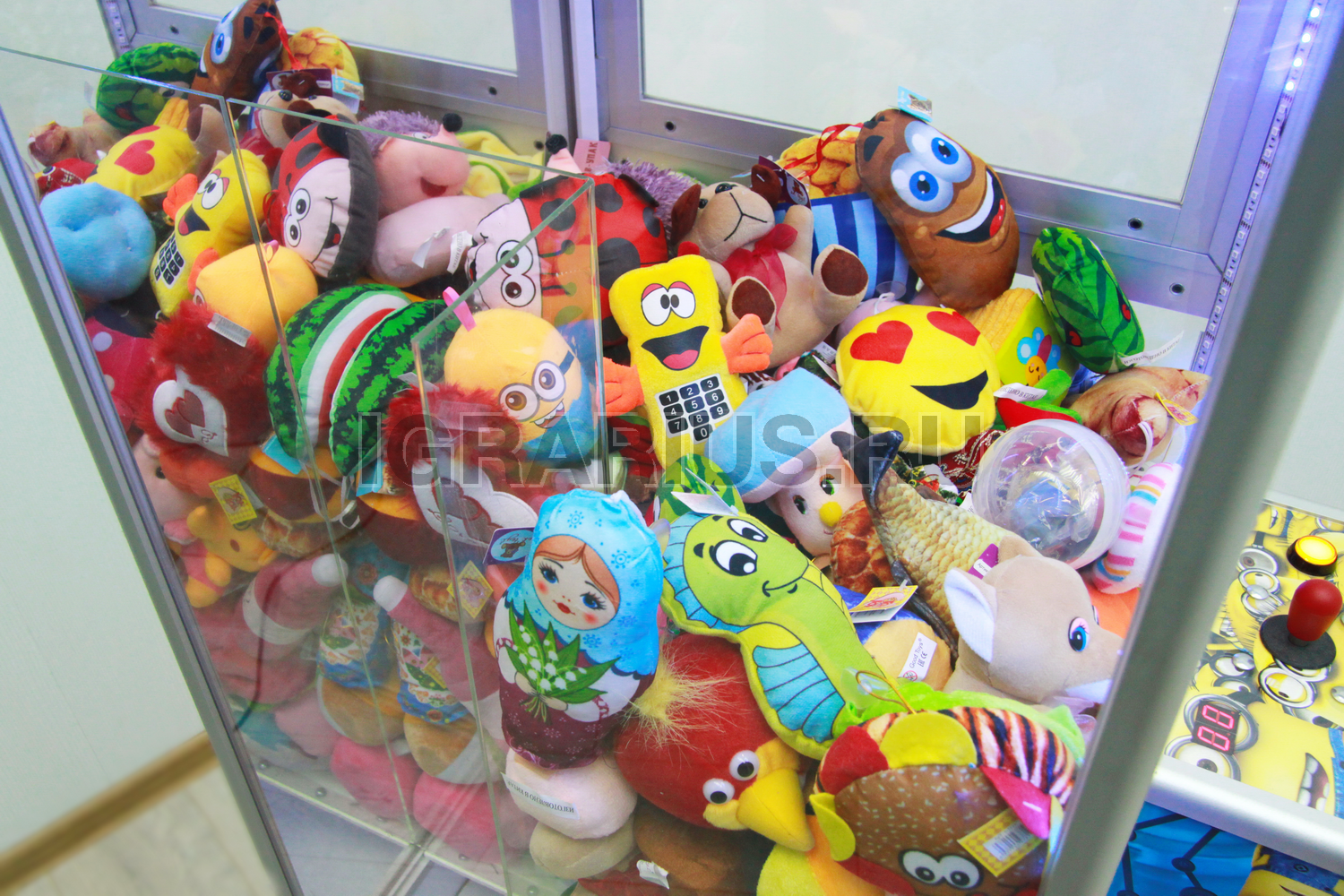 Управляя джойстиком надо навезти клешню над понравившиеся игрушкой и нажать кнопку. Клешня схватит/не схватит игрушку.