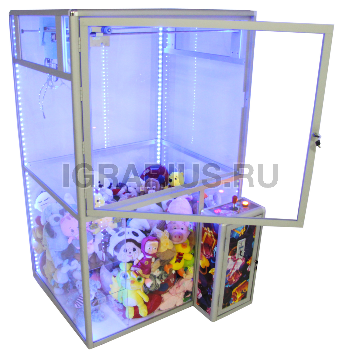 Управляя джойстиком надо навезти клешню над понравившиеся игрушкой и нажать кнопку. Клешня схватит/не схватит игрушку.