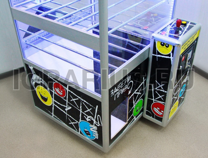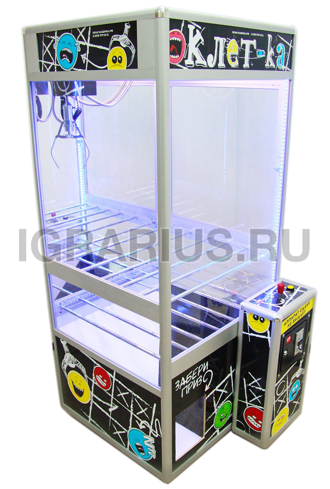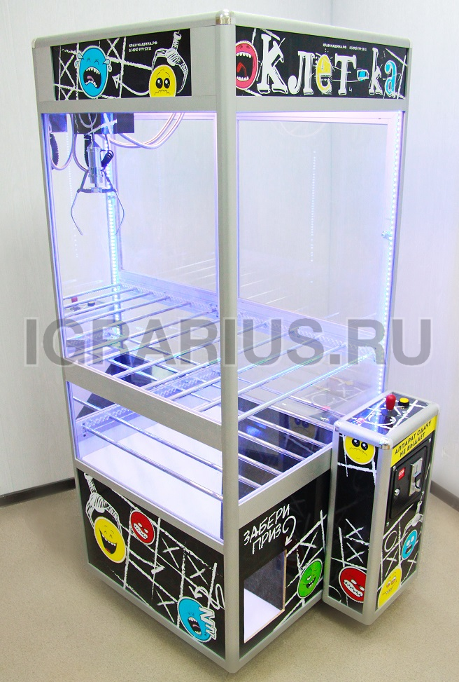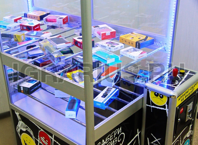 За выделенное время необходимо навести клешню с двумя захватамили над выбранным призом и нажать кнопку. Клешня медленно опускается вниз и начнет производить слабый захват как только дотронется до приза. Задача - смахнуть выбранный приз между палок. В аппарате два этажа полок. На нижнем можно располагать более дорогие призы, на верхнем - более дешевые. При тряске аппарата включается сигнализация и игра сразу же заканчивается. Ширина палок настраивается под любые предметы.