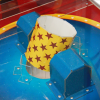 За отведенное время, необходимо управляя клешней схватить мяч/капсулу и прицельно бросить его в крутящийся барабан.