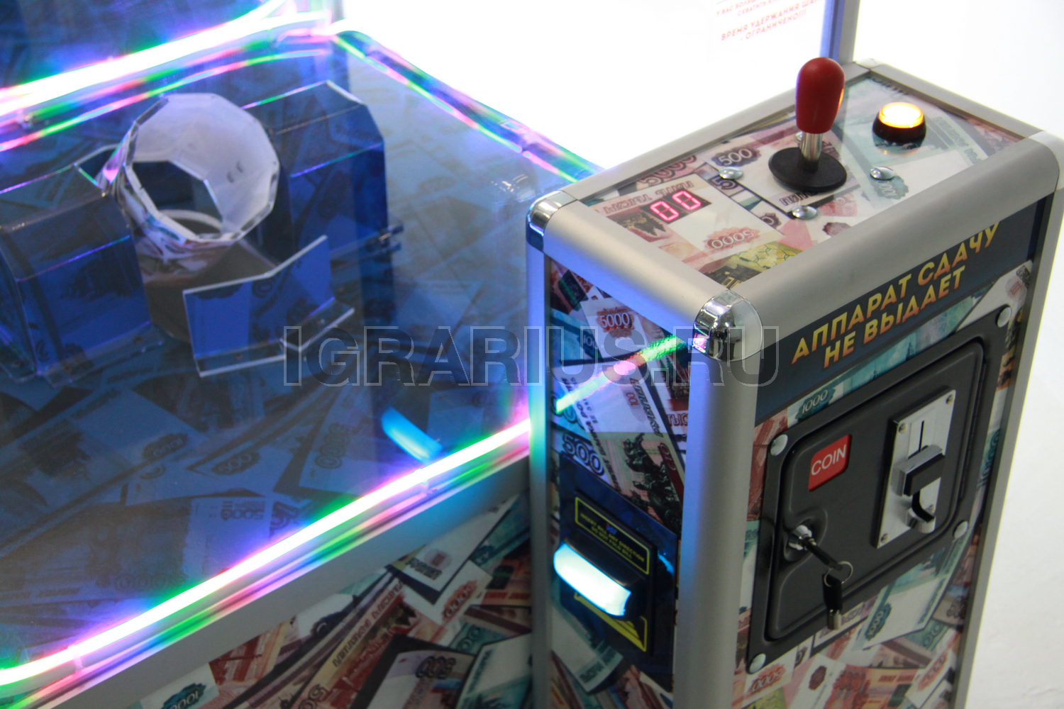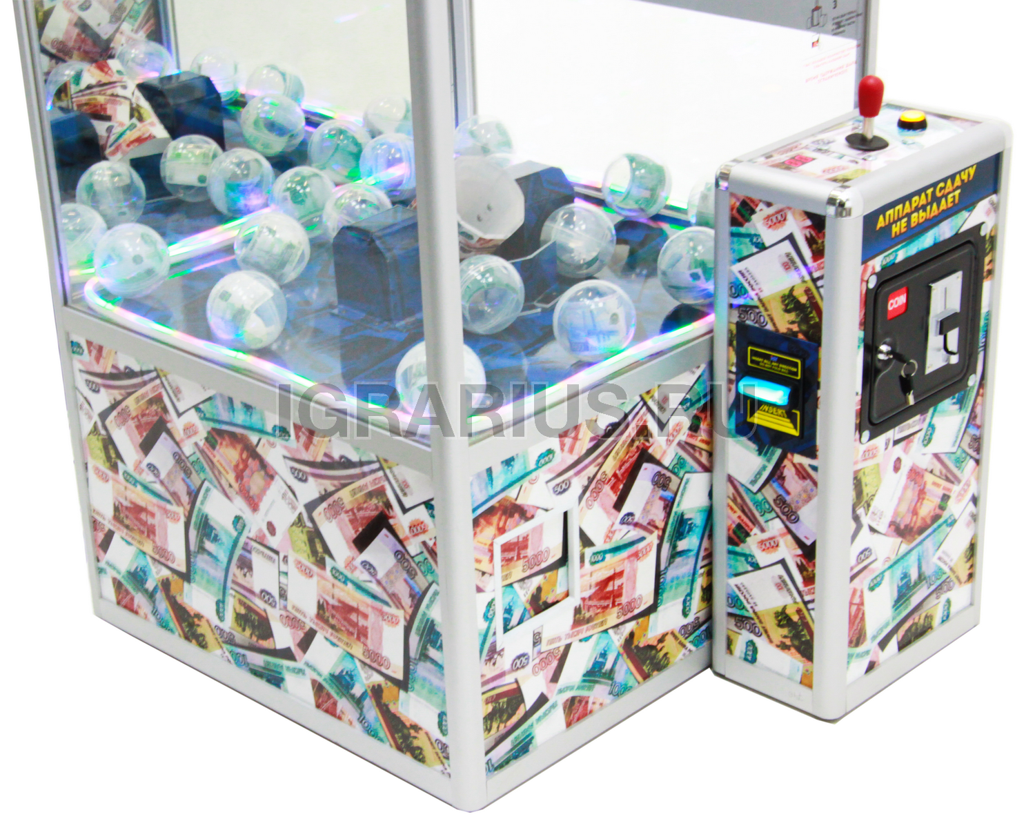 Аппарат разработан для дорогих призов в капсулах. Установлен специальный датчик захвата. Если за выделенное время не получилось схватить капсулу, то включается дополнительное время до первого захвата.