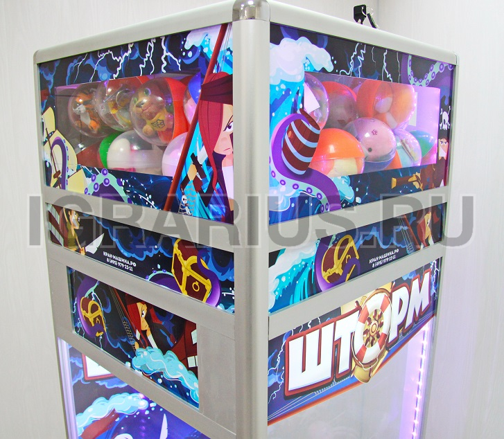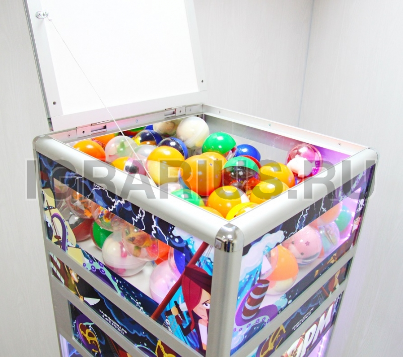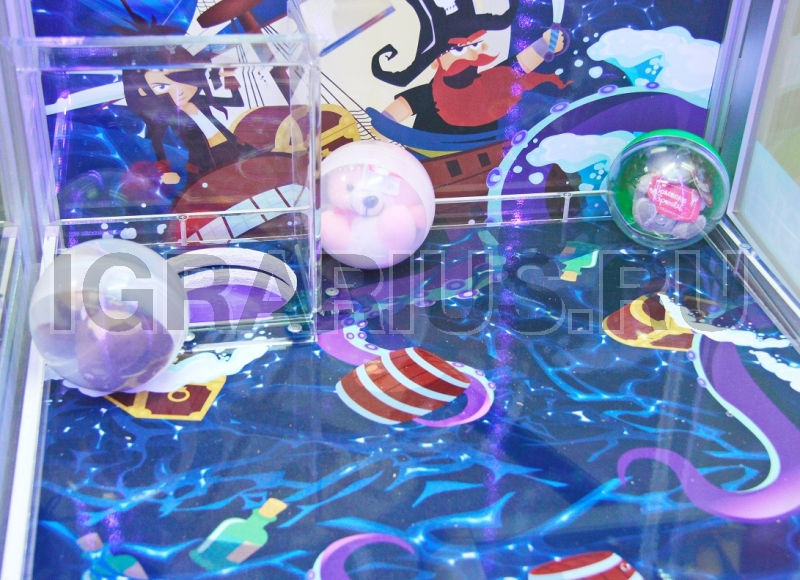 Для получения капсулы-приза игроку необходимо поймать клешней шар с качающегося игрового поля.