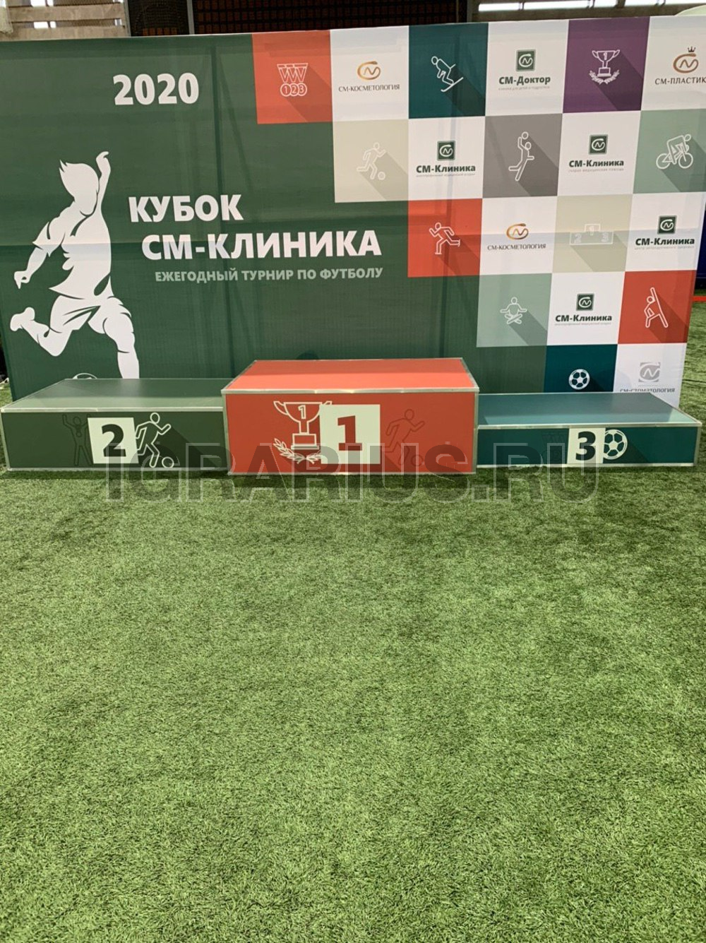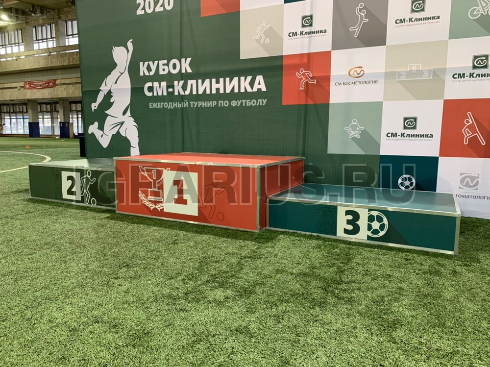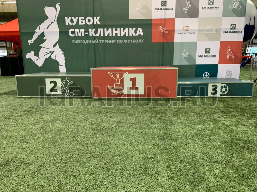 Предлагаем в аренду подиум для награждения победителей. Наш подиум выполнен из качественных материалов и имеет большую поверхность на которою возможно разместить до 15 человек одновременно на одной ступени. Возможен брендинг под Ваш индивидуальный дизайн.