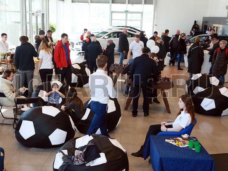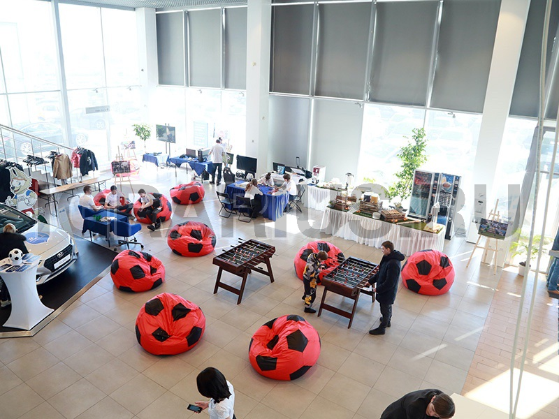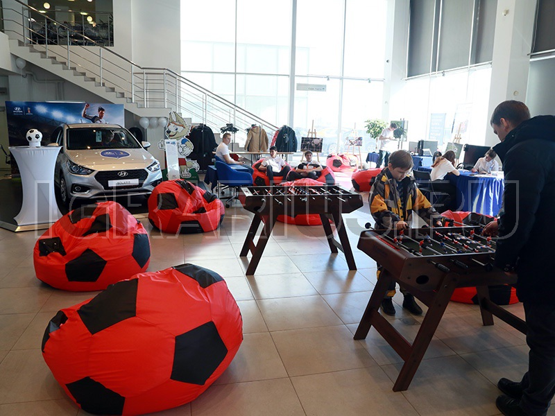 Предлагаем Вашему вниманию новинку нашего парка стилизованные мягкие пуфики в виде футбольного мяча. Допустим собрались Вы компанией просмотреть матч любой команды, а стульев на всех не хватает или Вы собираетесь провести время за просмотром футбола максимально комфортно, просто позвоните нам, и мы доставим Вам необходимо количество пуфов, которые не только позволят насладиться просмотром, но и создадут отличную атмосферу полного погружения.