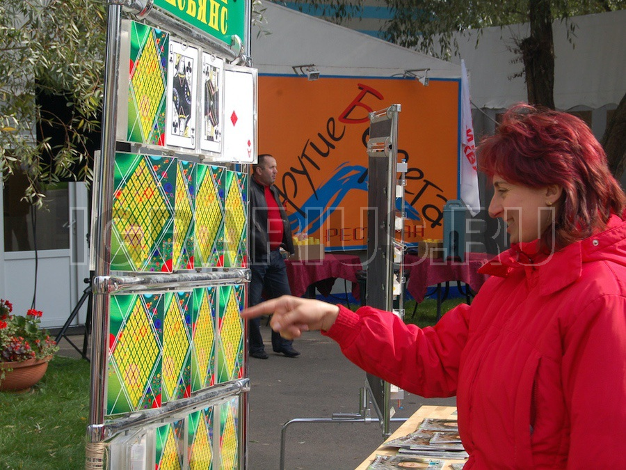 Игра представляет собой вертикальный стенд, на котором закреплены игральные карты – пять рядов по четыре карты, которые вращаются вокруг своей оси. Суть игры в том, что карты - парные, и задача игроков после того, как ведущий покажет Вам карты на 15 секунд, а затем, переворачивает игровое поле, угадать как можно больше карточных пар. А что, если заменить карты, например, фотографиями Ваших сотрудников или логотипами компаний Ваших клиентов. И тогда карточный стенд станет ещё увлекательнее.