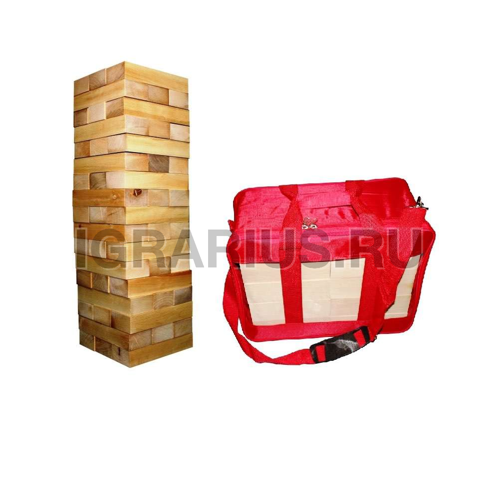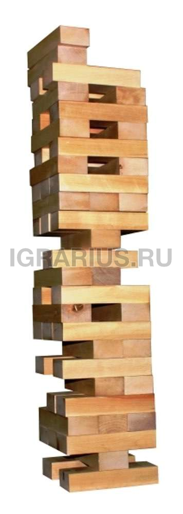 Гигантская дженга с 51 брусками прекрасно подходит для использования не только в помещении, но и дает возможность использовать ее на влажной траве.