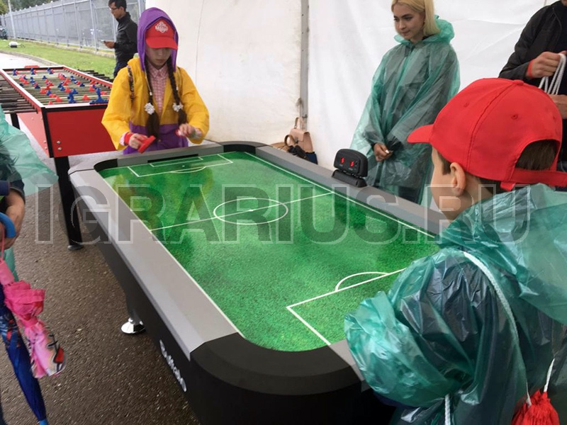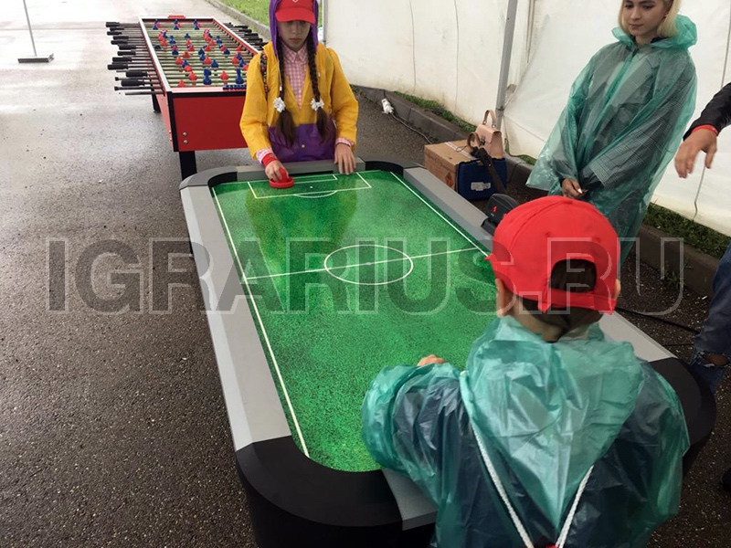 Еще одна новинка в линейке аттракционов на футбольную тематику. Уверенны наш Аэрофутбол станет прекрасным заменителем полюбившего вся всем аттракциона «Аэрохоккей» и безусловно станет центром внимания любого мероприятия от детского до корпоративного. Вы можете использовать его как самостоятельную точку активности, а можете провести соревнования или даже полноценный турнир. Аттракцион подходит для использования не только в помещениях, но и на открытых площадках, благодаря нашим мобильным переносным навесам или зонтикам.