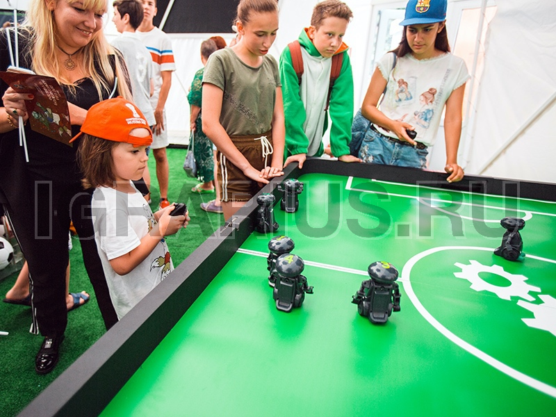 Вот и наступило будущее, о котором писали в советское время. Аттракцион «РоботоФутбол» — это эксклюзивная игра с элементами робототехники. Теперь у каждого есть возможность управлять настоящими роботами – футболистами! Суть игры, как и в настоящем футболе – забить гол в ворота соперников. Игроки – это роботы-футболисты на радиоуправлении.
