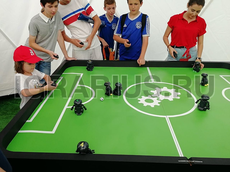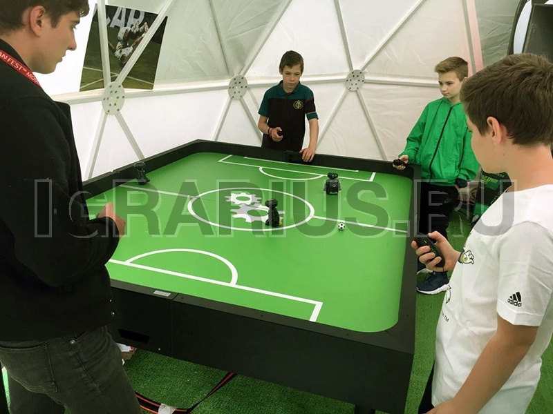 Специальное программное обеспечение в роботах-футболистах, даёт возможность плавного управления и маневрирования ими на разных скоростях. Ворота оснащены датчиками попадания мяча. Вся информация о голах и времени игры выводится на табло.
