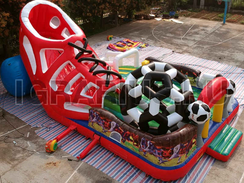 Игровой надувной комплекс "Футбольная бутса" представляет собой группу надувных аттракционов, объединенных между собой и образующих единую игровую площадку. Безусловно этот аттракцион станет любим всеми детишками без исключения, а родители в этот момент смогут наслаждаться просмотром футбольного матча.