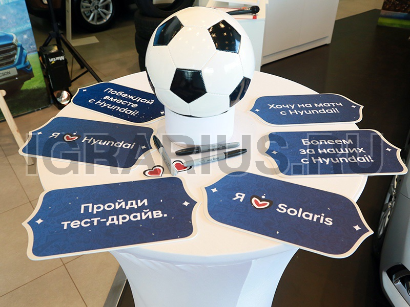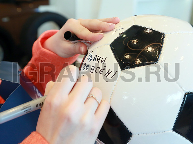 Можно написать на мяче пожелания игрокам любимой команды, можно написать счет предстоящего матча, ну или просто сгенерировать свои мысли. В завершении мероприятия мяч станет отличным подарком либо директору компании, имениннику или человеку, который угадал счет или был максимально близок к этому.