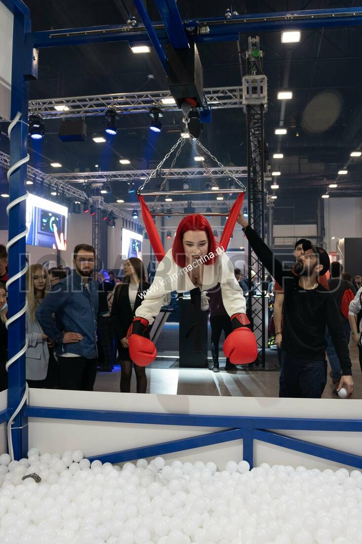 Подвеска установлена на специальном шарнире и при движении ребенок крутится в разные стороны. Это усложняет захват выбранного приза, но добавляет много веселых эмоций. Для усложнения советуем одевать большие боксерские перчатки. ( в комплекте )