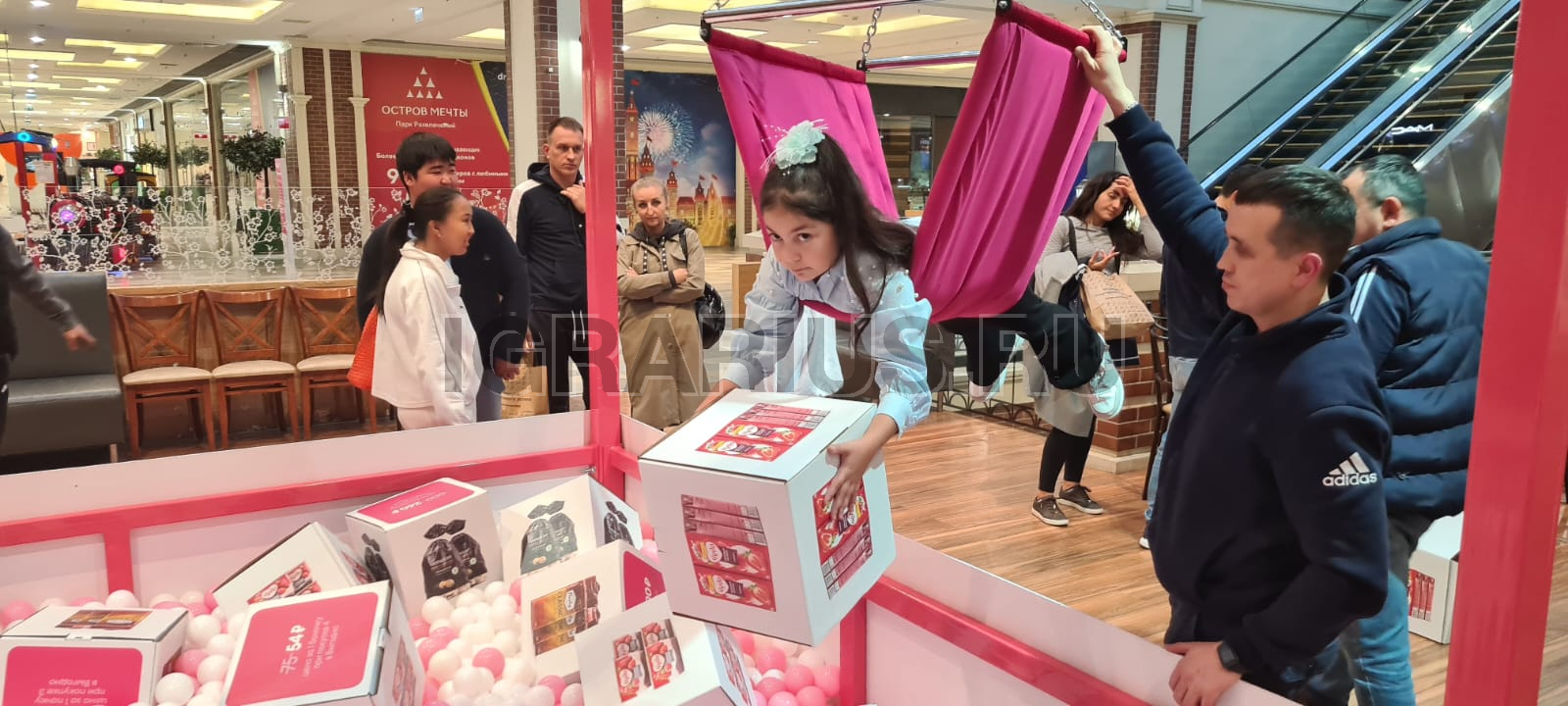 - За эти секунды ребенку надо схватить приз!!! (малые игрушки, призы в коробках)