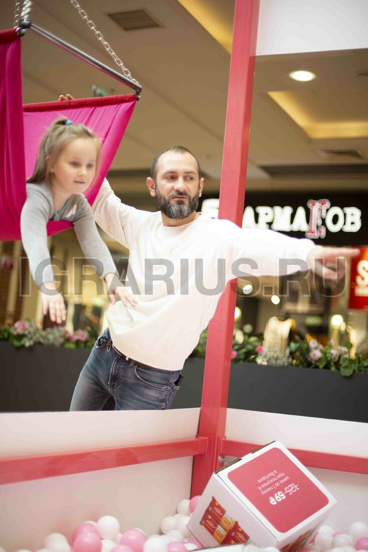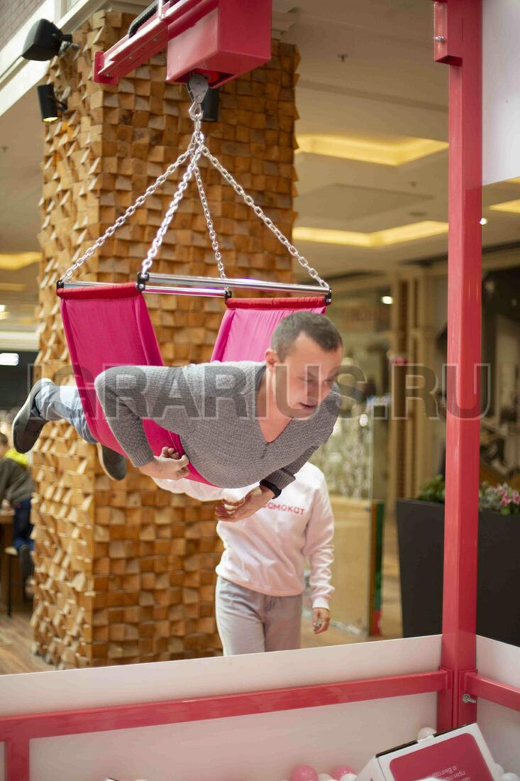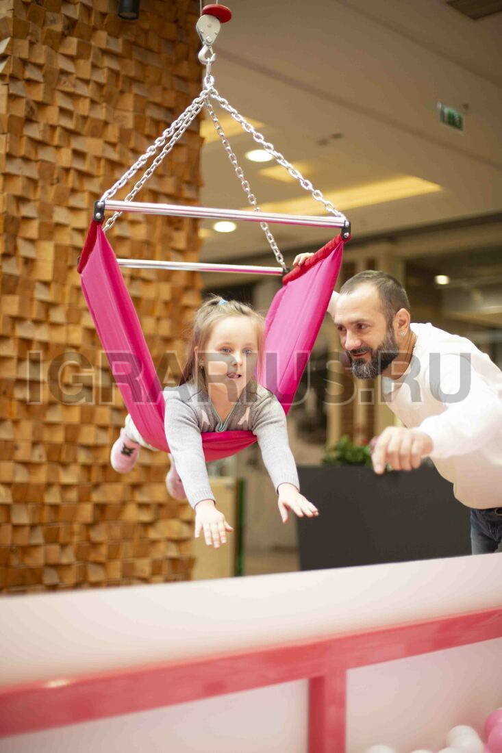 - После оплаты сотрудник аттракциона подвешивает ребенка на специальные подвеску.
