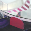 Толкатель поедет в сторону призового окна, и при точном попадании, столкнет приз.