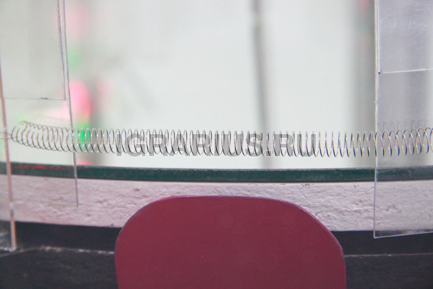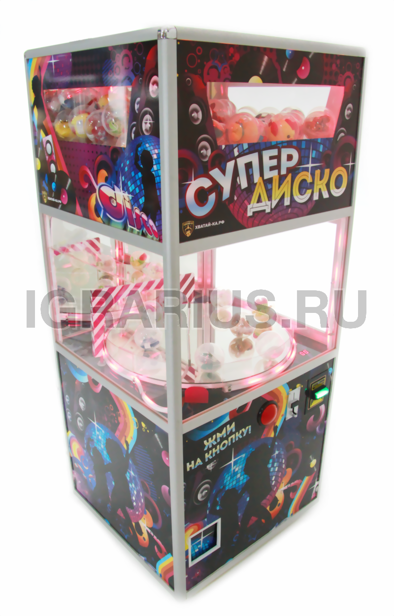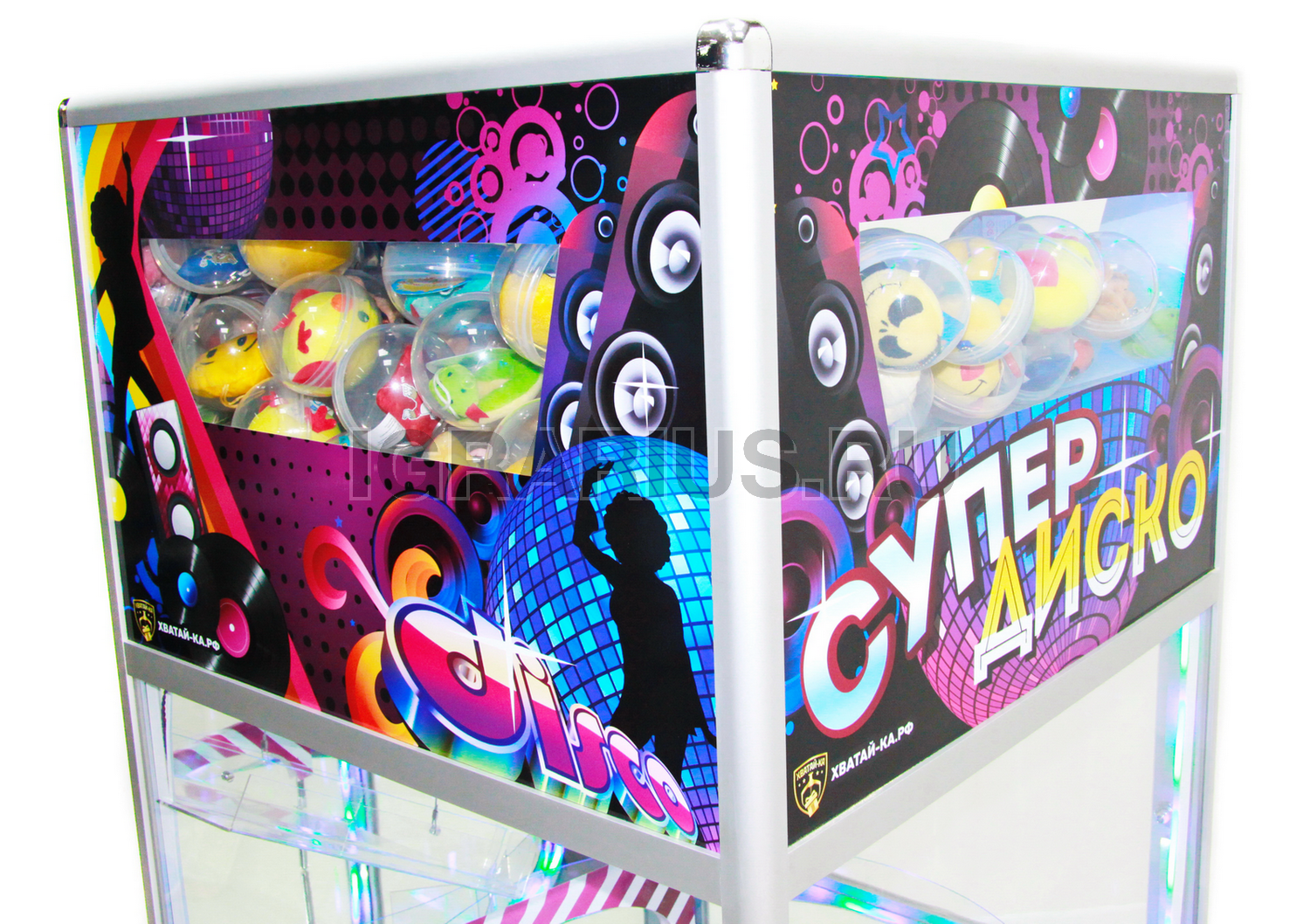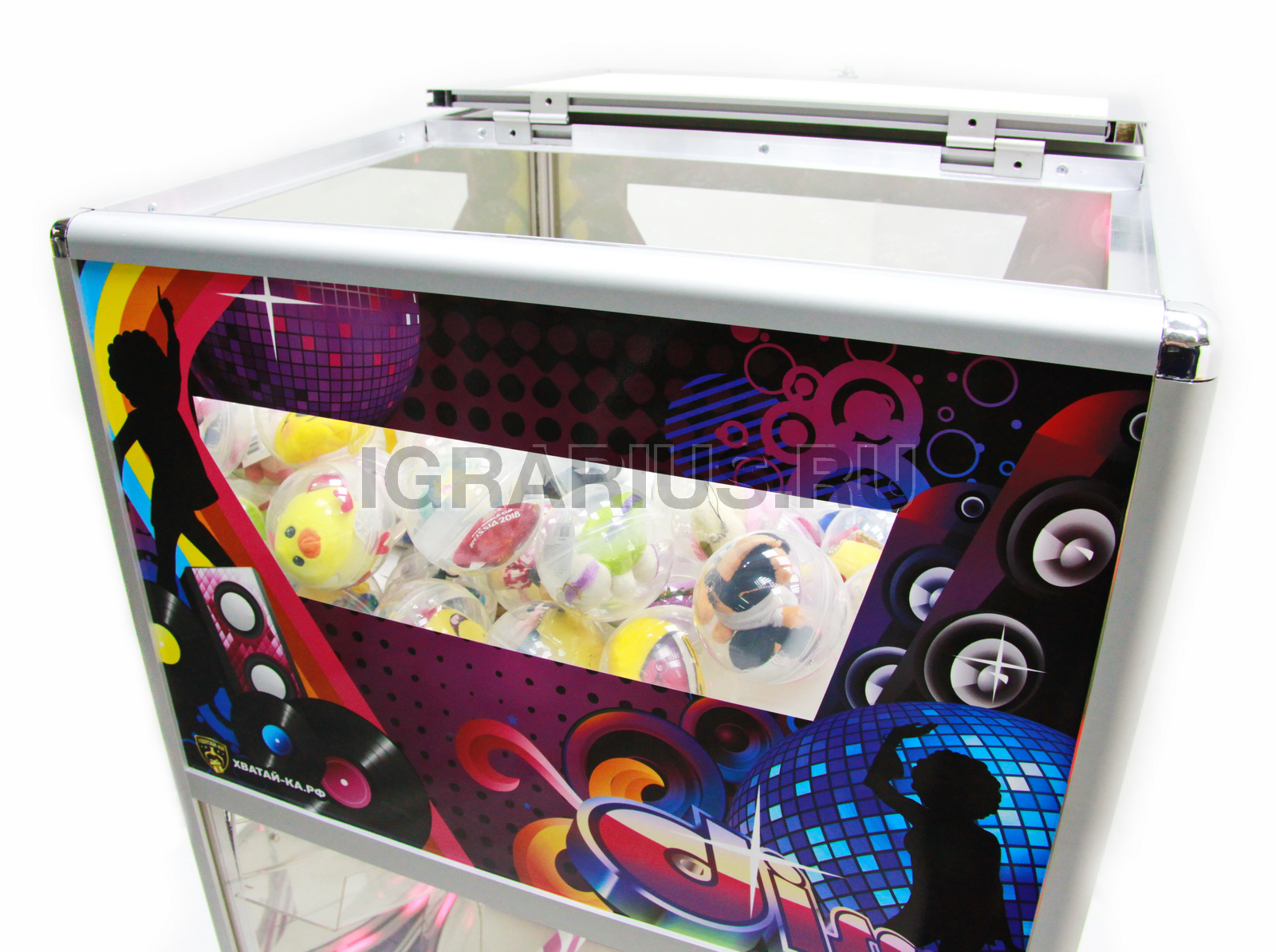 Толкатель поедет в сторону призового окна, и при точном попадании, столкнет капсулу в призовое окно.