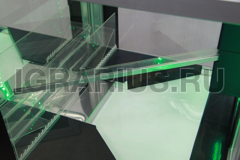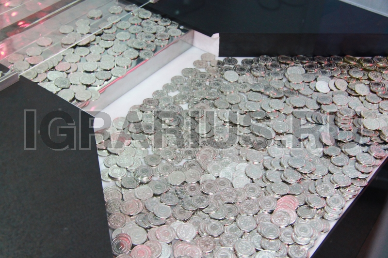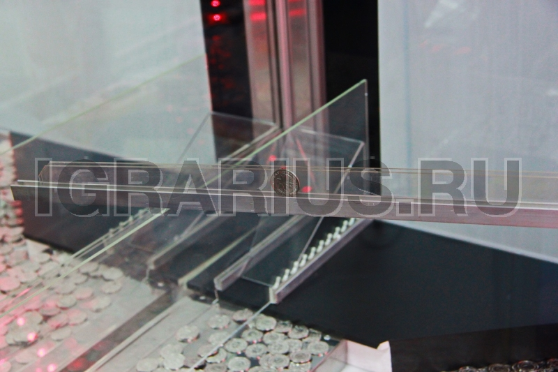 После нажатия кнопки, направляющая планка от жетоноприемника начинается двигаться вправо-влево. Необходимо прицелится и направить монету по направляющей планки в свободное место на толкателе, при удачном попадании монета сталкивает другие монетки на нижнее поле, а толкатель сдвигает кучу монет в призовое окно.