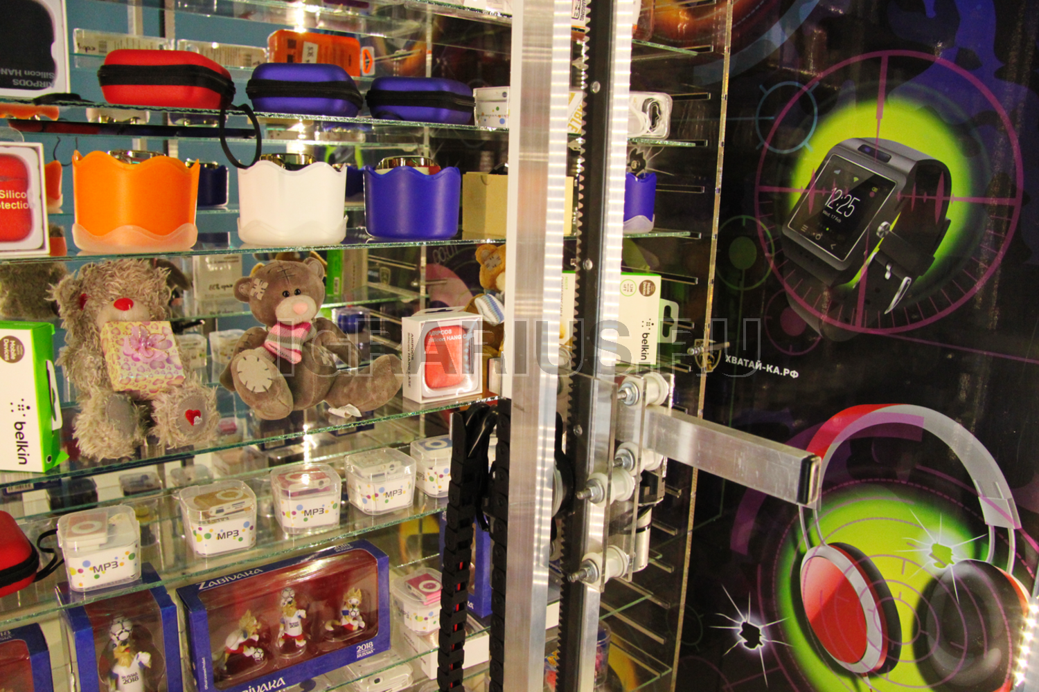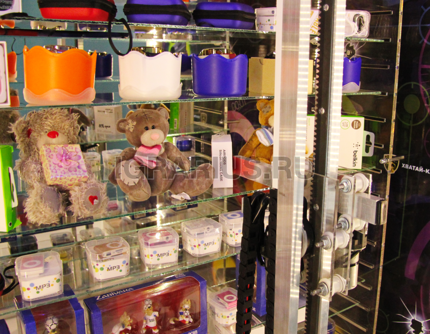 Призами могут быть мягкие игрушки, коробки с разной электроникой, телефоны, плееры, часы.