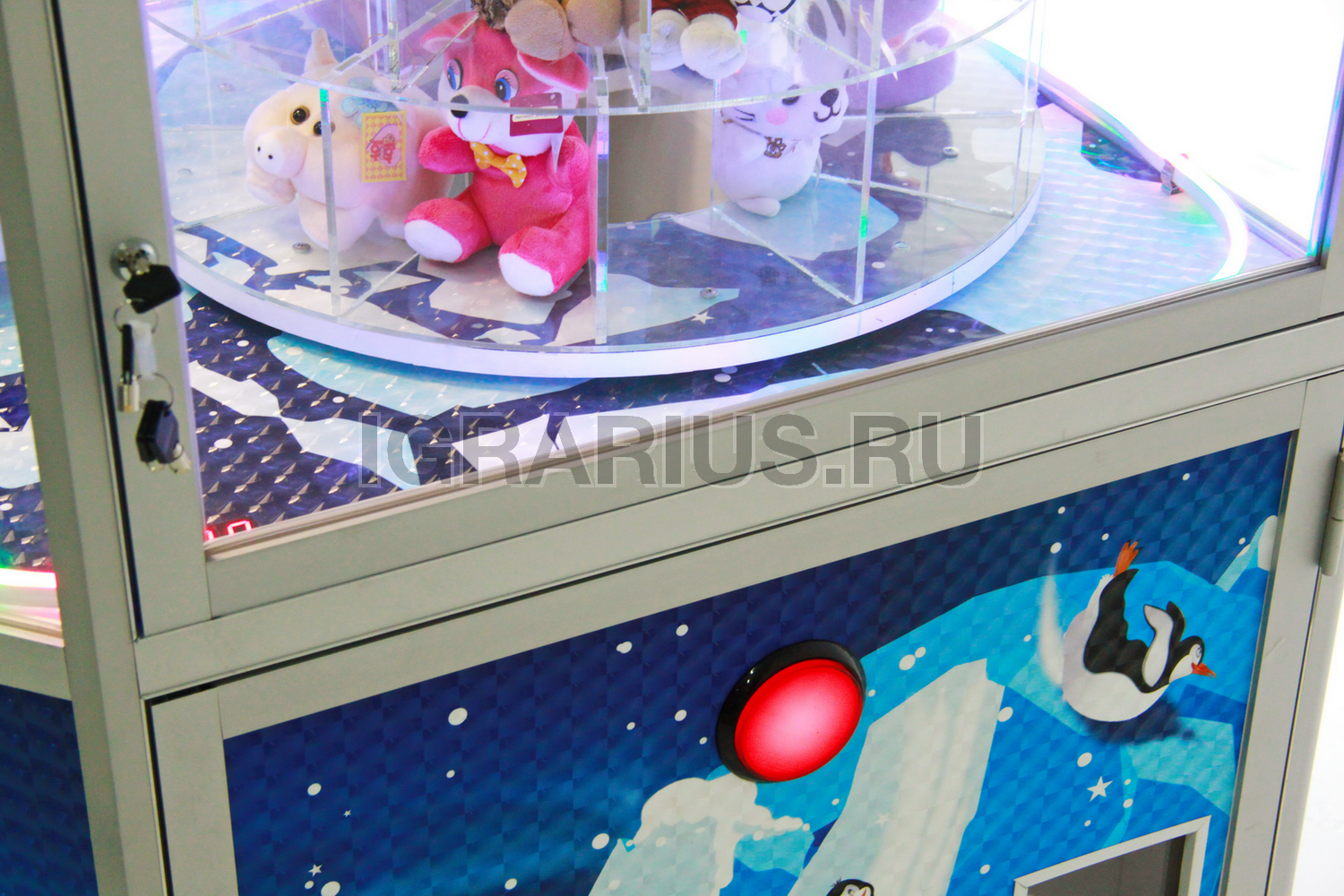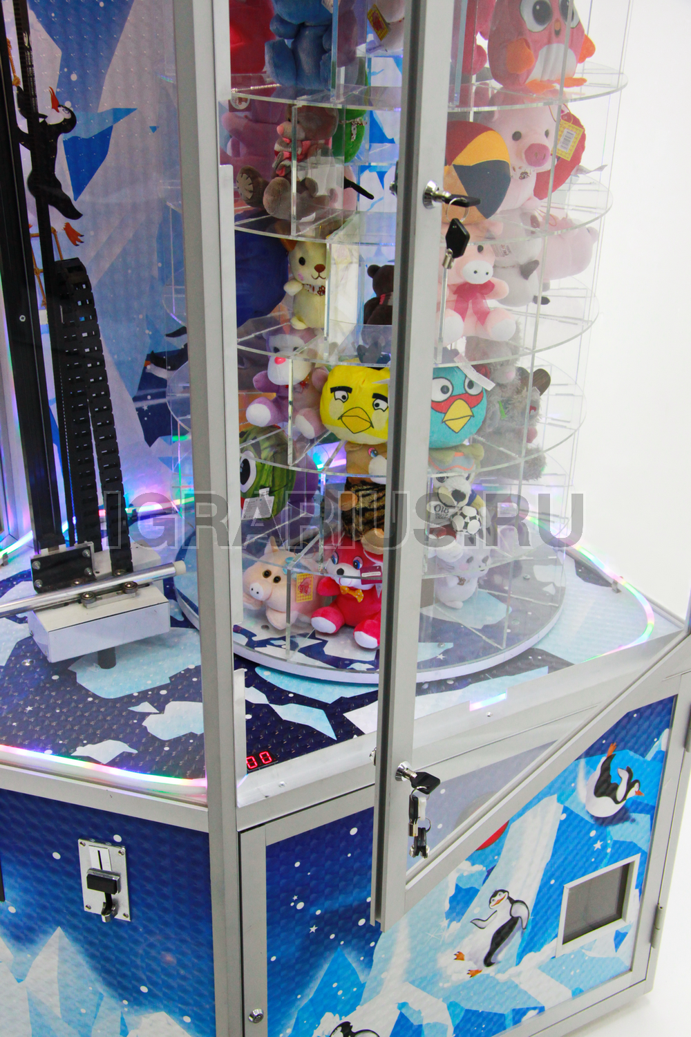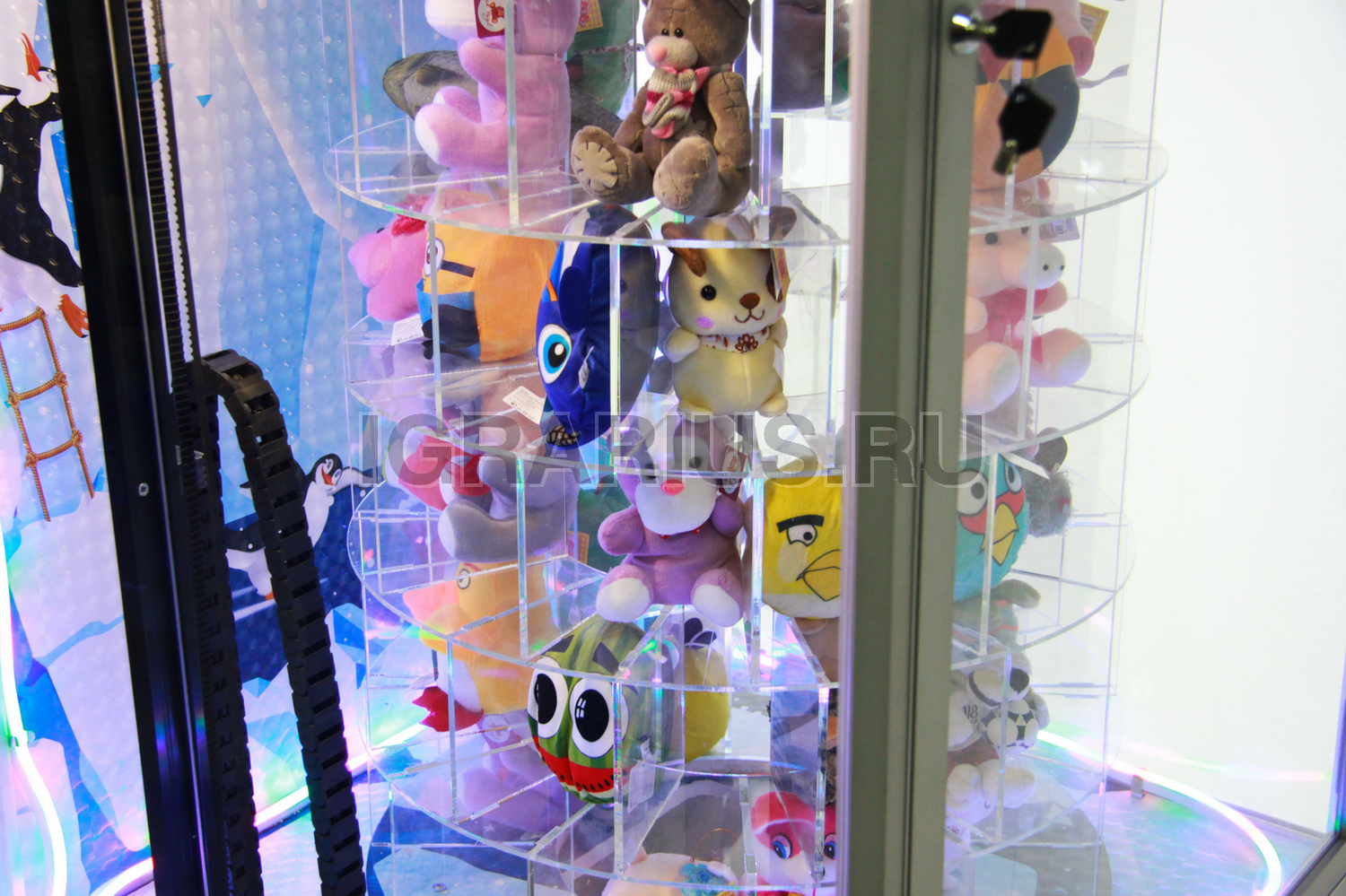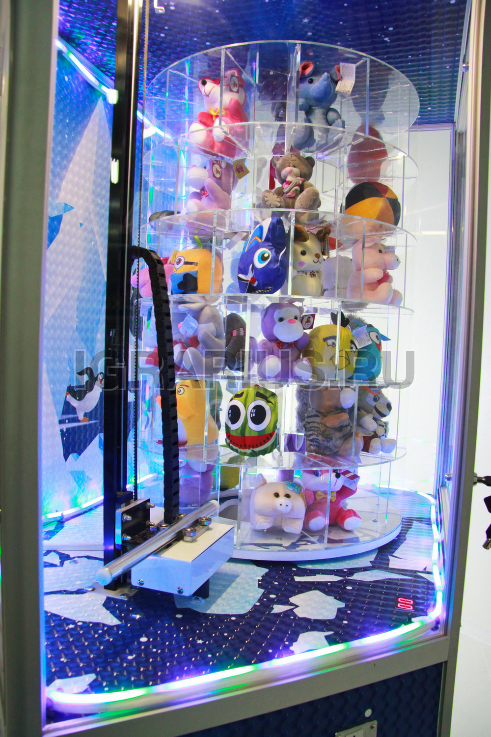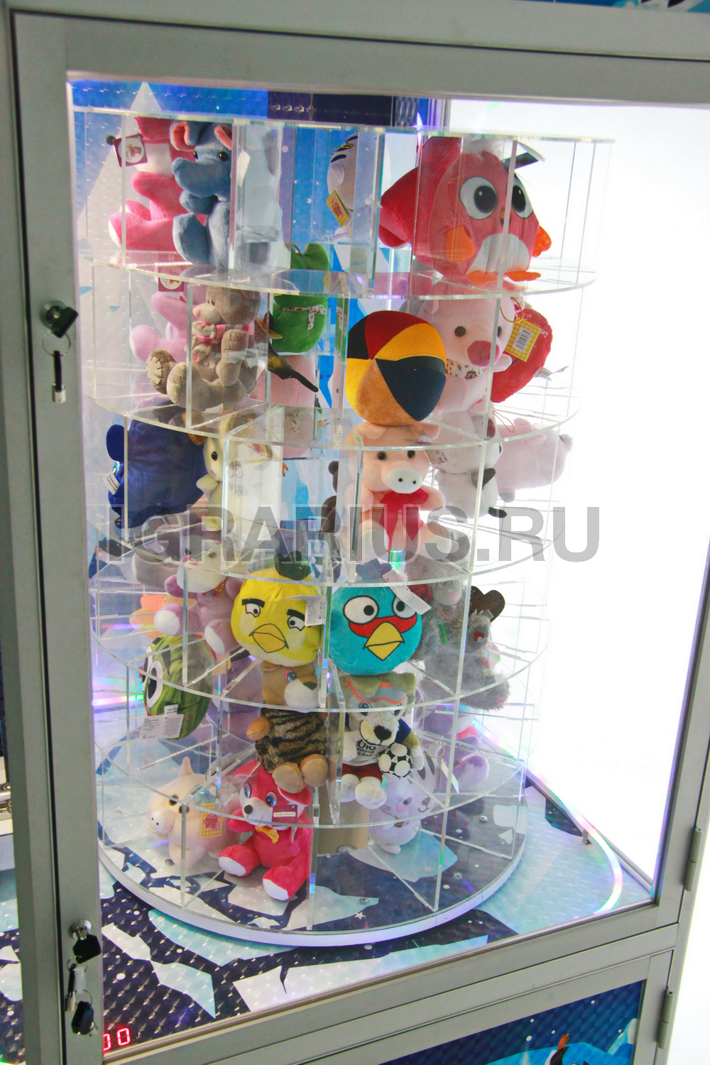 После оплаты многоэтажный барабан с игрушками начинает вращение.