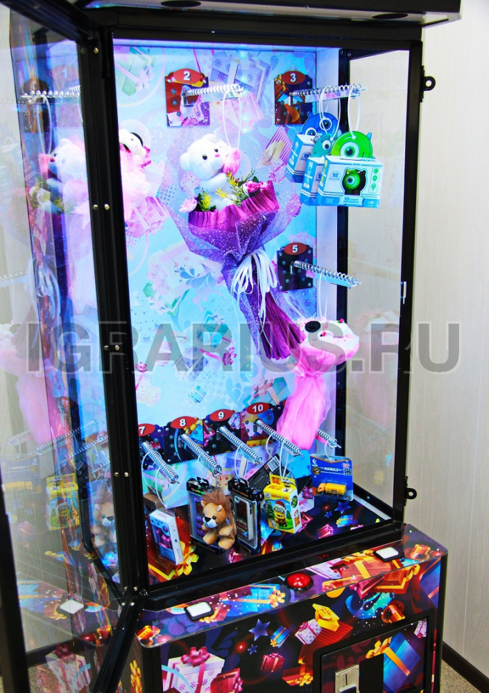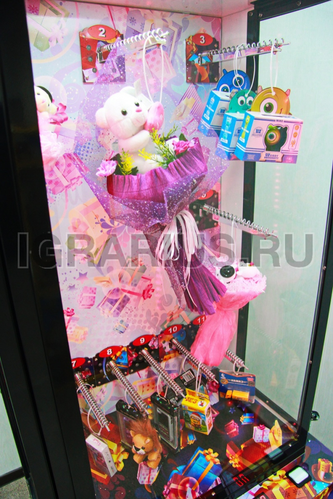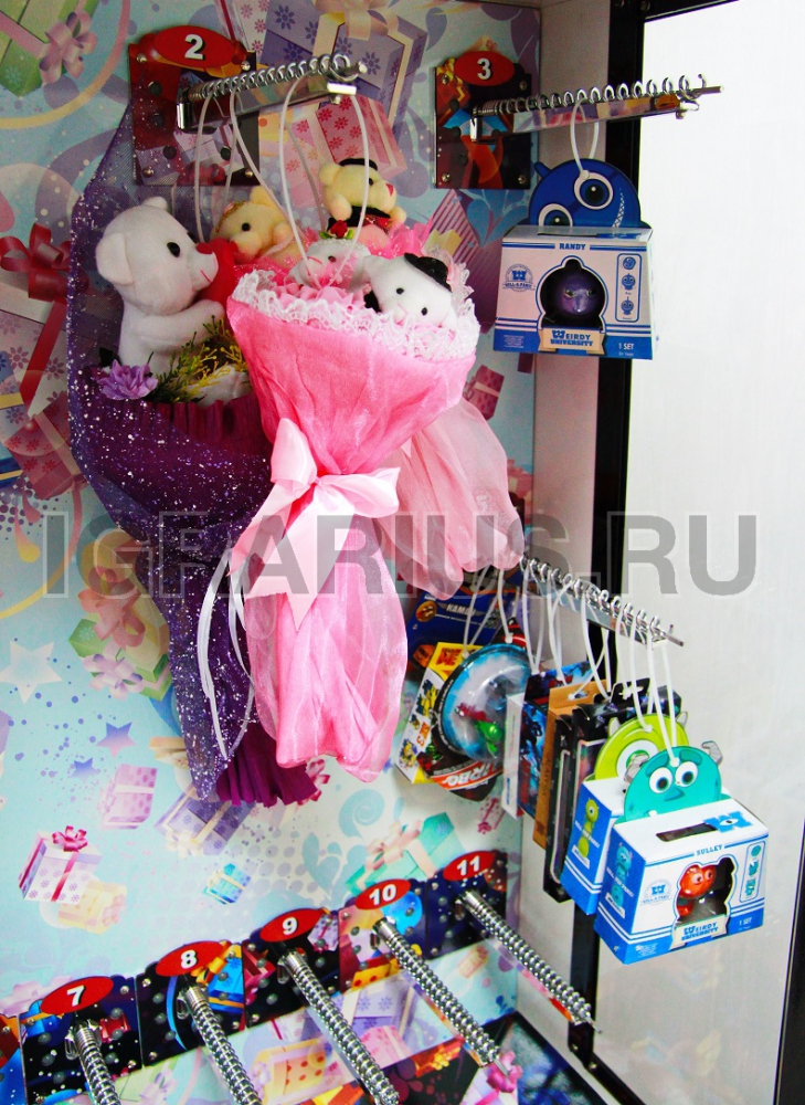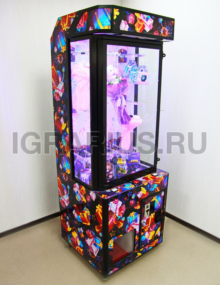 Аппарат предназначен для продажи штучного товара, букетов, игрушек, сувениров в коробках любых размеров и форм.