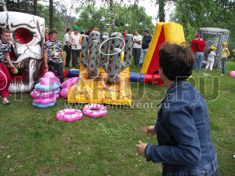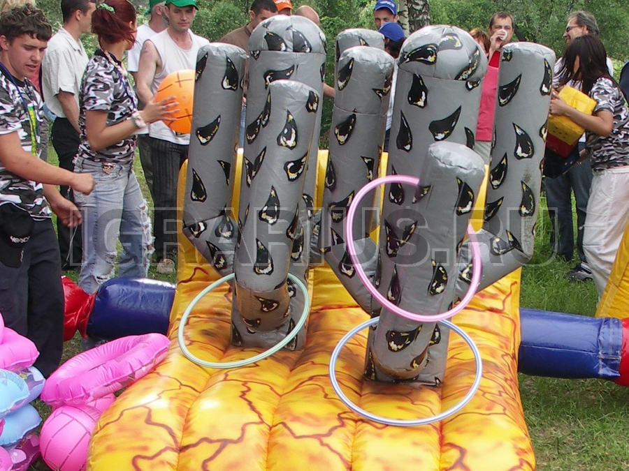 На надувной площадке растут два настоящих мексиканских кактуса, задача играющего, с пяти попыток набросить на два отростка кактуса пластиковые кольца (принцип кольцеброса). Чем больше колец останутся висеть на кактусе, тем больше шансов выиграть приз.