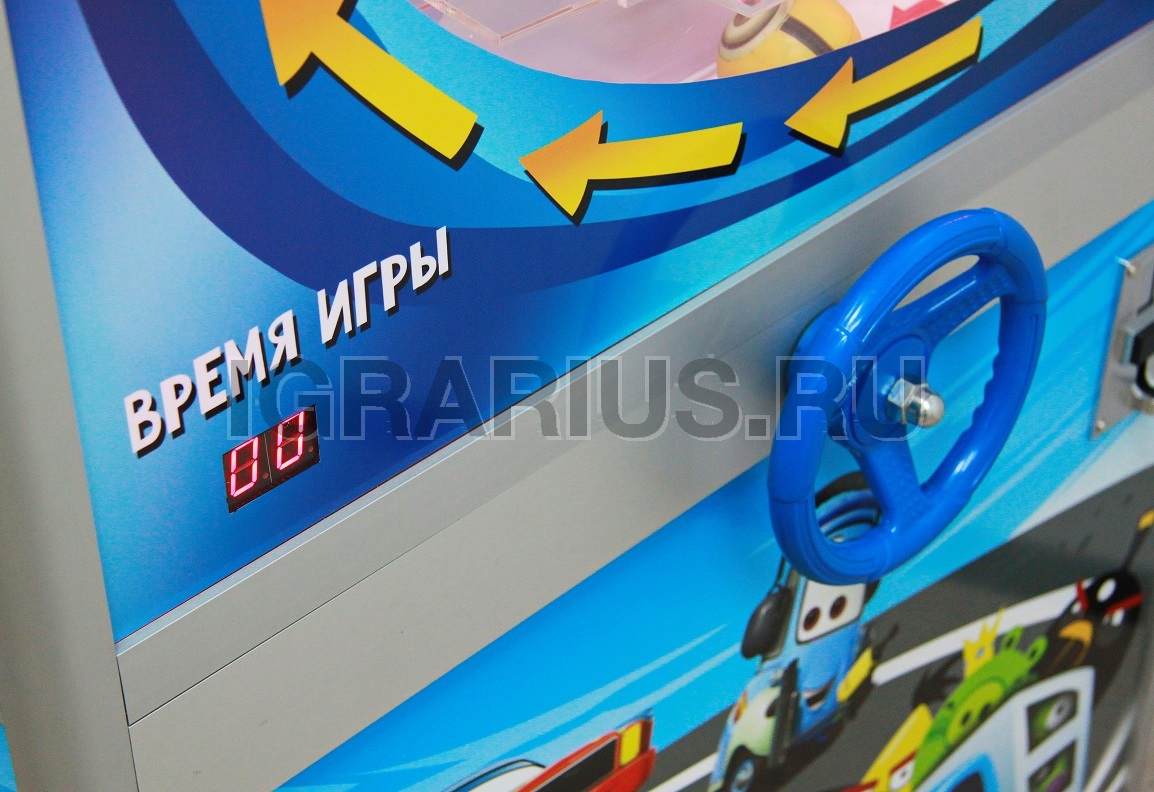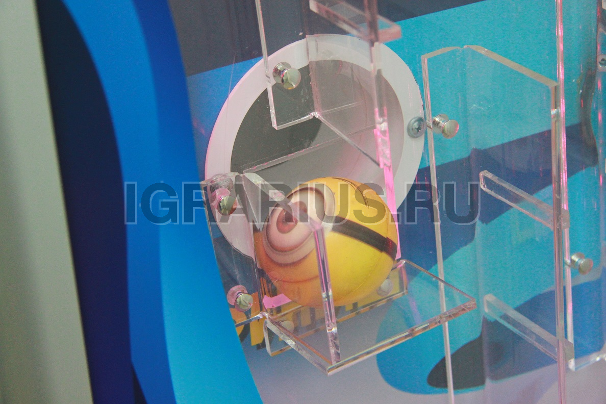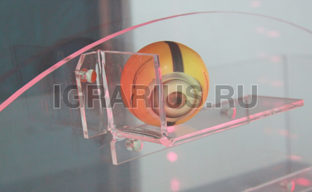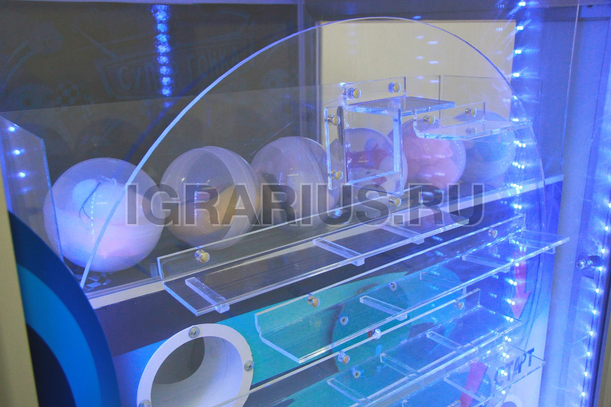 Двигая руль вправо/лево надо прокатить мячик по всем дорожкам, закатить в самый нижний кармат и направить карман с мячиком в верхнее окно финиша. Мяч попадая в трубу выкатится в нижней части на игровое поле, а в призовое окно выпадет шар с игрушкой.