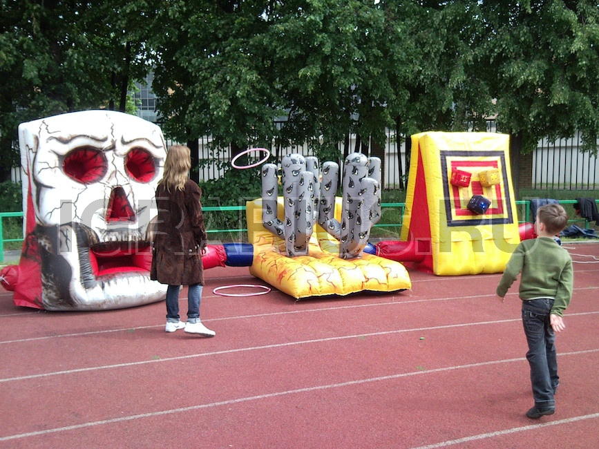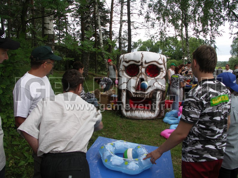 В этой игре участнику выдается небольших четыре резиновых мячика. С четырех попыток надо попасть в три отверстия расположенные в черепе: в правый глаз, левый глаз и нос. Попал все три броска точно в цель, получи приз, нет, передай ход товарищу.