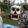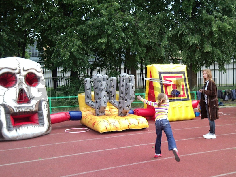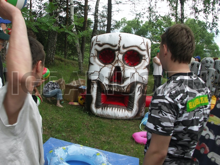 Череп: В этой игре участнику выдается небольших четыре резиновых мячика. С четырех попыток надо попасть в три отверстия расположенные в черепе: в правый глаз, левый глаз и нос. Попал все три броска точно в цель, получи приз, нет, передай ход товарищу.