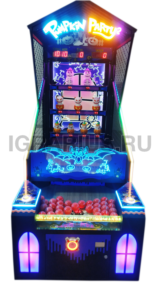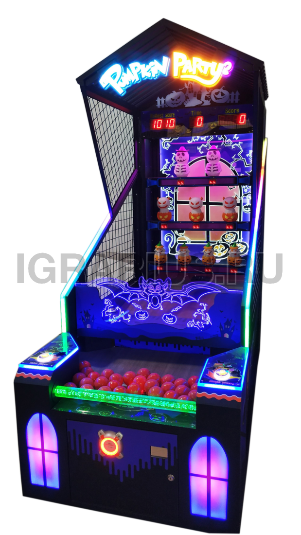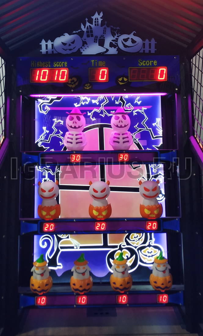 После оплаты на поле выкатываются мячики. За выделенное время мячиками надо сбить 9 штук приведений. Чем больше сбитых, тем больше очков. Призами могут быть билеты или капсулы с призами.