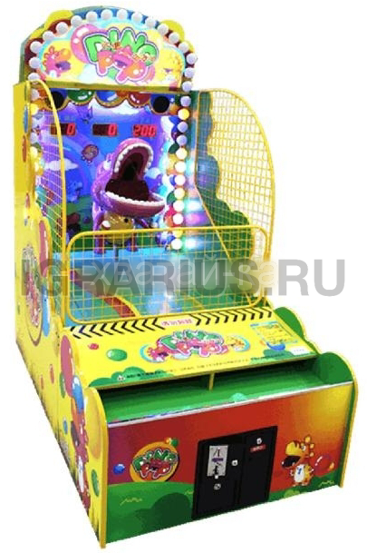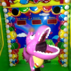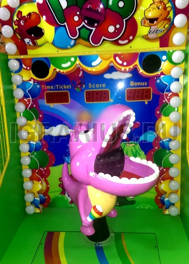 После оплаты на поле выкатываются мячики. За выделенное время надо попасть мячами динозавру в ротик.