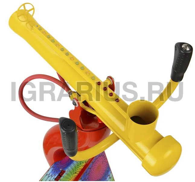 - В корпусе пушки установлена регулировка стрельбы от размера и материал мячей.