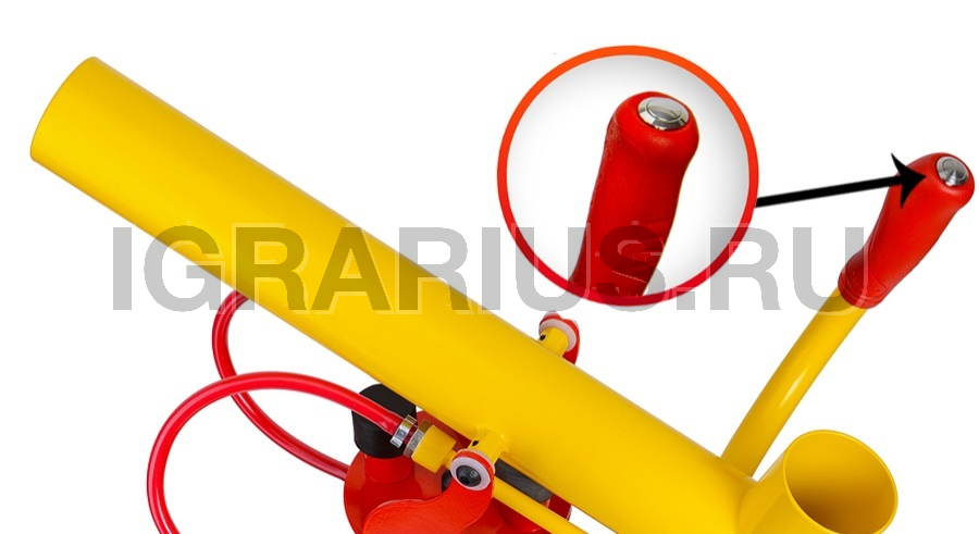 Мяч кладется с верху, нажимается спусковая кнопка - происходит выстрел.