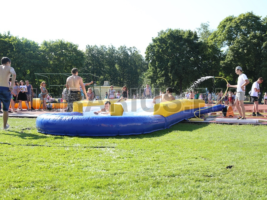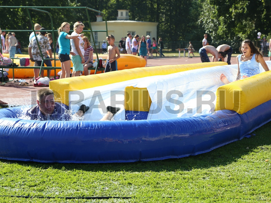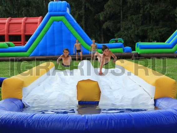 Суть игры заключается в том, чтобы как можно бодрее и веселее вкатиться в бассейн с водой. Перед Вами универсальная игра, как для детских, так и для взрослых праздников. Чтобы играть в неё не нужно обладать какими-то особенными физическими данными, достаточно просто хорошенько разогнаться и, прокатившись по слайдеру, оказаться в бассейне.