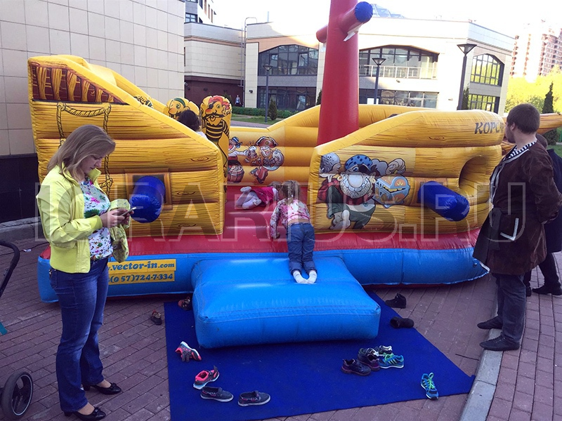 Если Вы решили отправиться в приключенческое путешествие по морям и океанам, то Вам не обойтись без нашего кораблика. Батут «Корабль» отличная декорация и интерактивная точка для праздника в пиратском стиле, который так популярен на детских мероприятиях.
