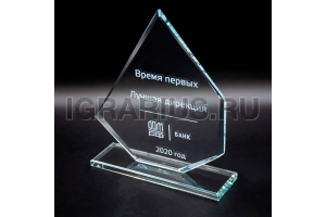 Награда из стекла. Материал - отбеленное стекло "оптивайт" толщиной 10 мм. Возможно изменение размера или формы. По желанию клиента можно изготовить стеклянную награду толщиной 6, 8, 10, 12 мм, либо из зеленого стекла.  Также можно приобрести заготовки наград без нанесения.