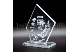 Приз из стекла арт. V011. Подходит для объемной 3д гравировки внутри стекла. Может быть элементом сложной награды.