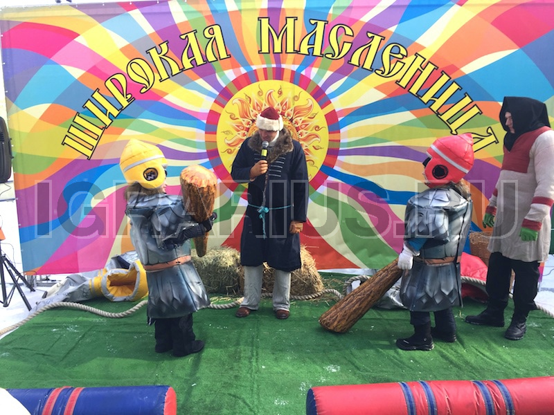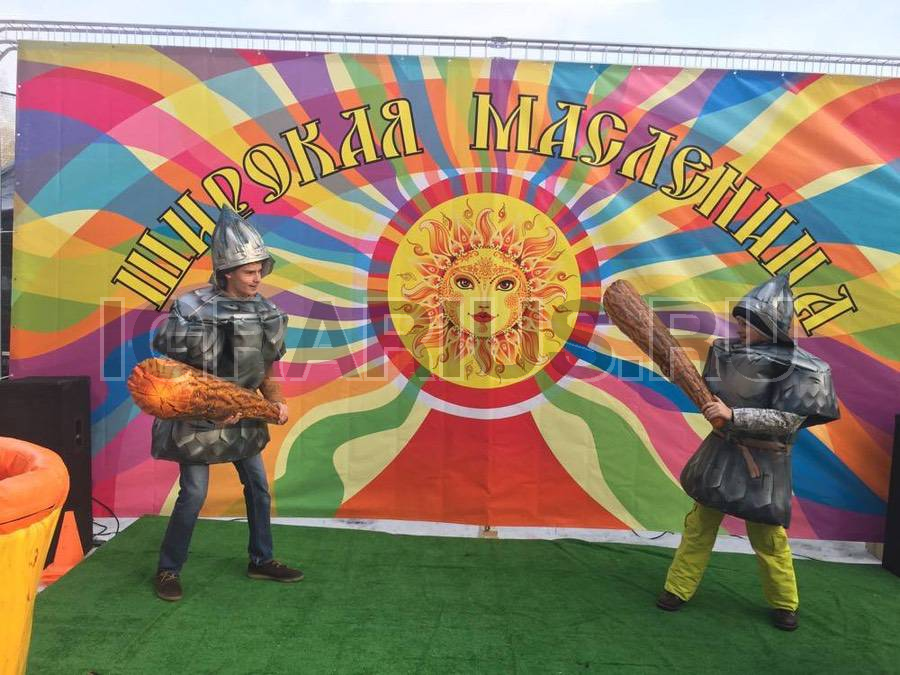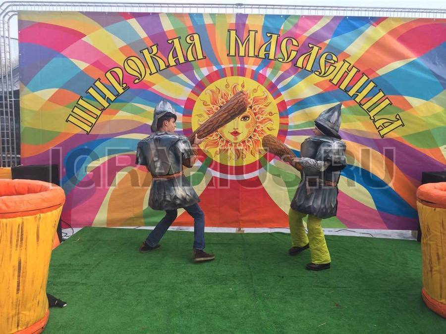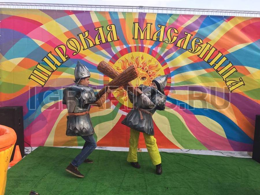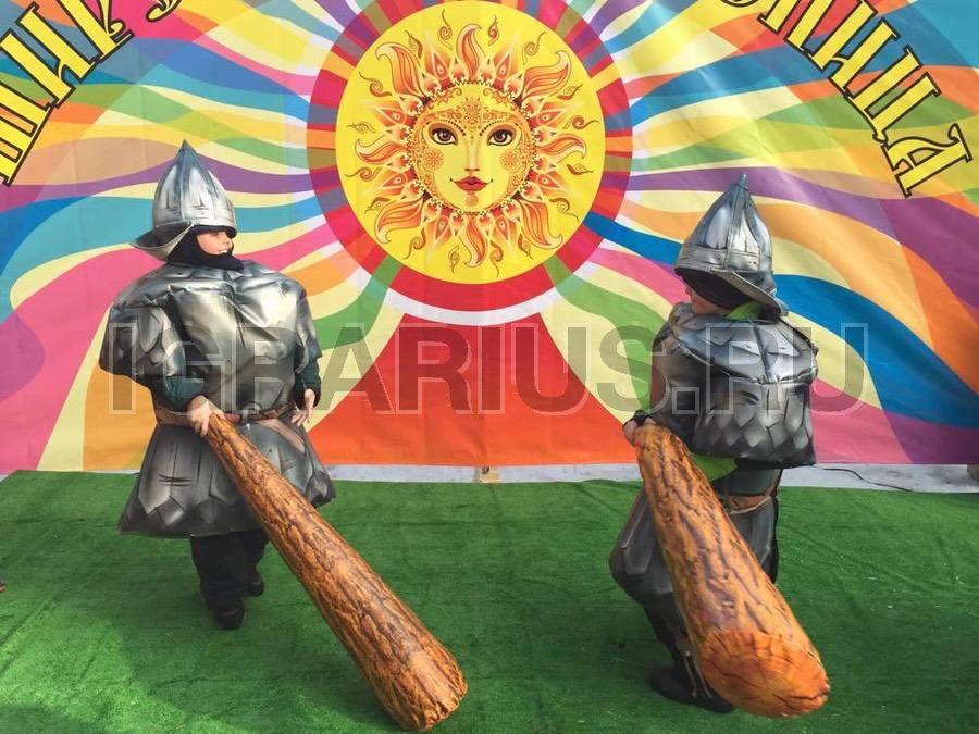 Отличный конкурс который впишется в программу по тимбилдингу в Рыцарском или Славянском стиле. Задача участников: одеть на себя костюм богатыря и шлем, взять в руки булаву и победить соперника! Правила игры могут быть различными, например – сбить шлем противника булавой, либо вытолкнуть «врага» за границы поля боя. В нашем арсенале 3 пары богатырских костюмов – 2 пары взрослых и одна детская, если вы возьмете в аренду все костюмы, можно устроить Богатырскую эстафету по три человека в команде, для семейных стартов «Папа, Мама, я – богатырская семья!»