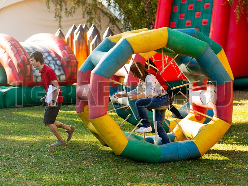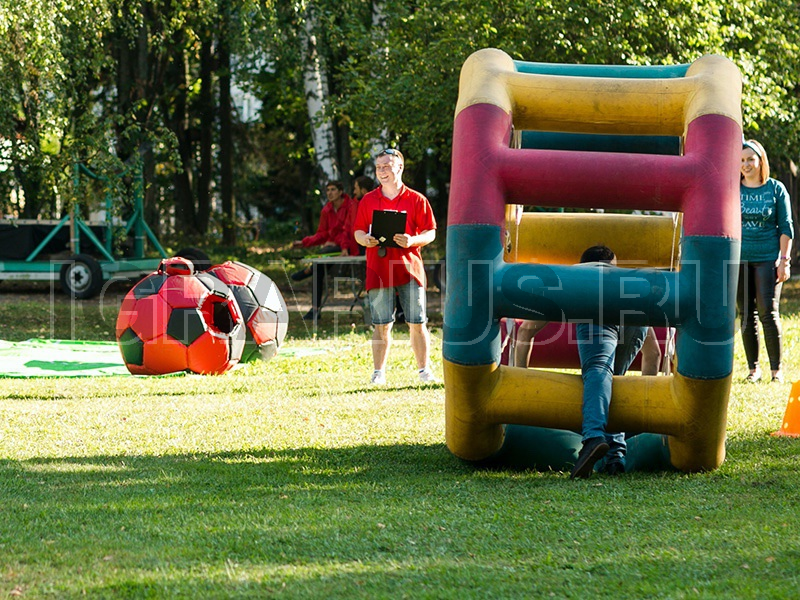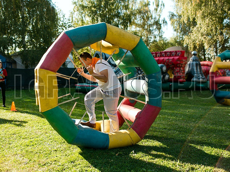 Заходите внутрь надувного колеса и побежали. От старта к финишу от финиша к старту. Отличный эстафетный аттракцион, который подойдет для командных веселых стартов и спортивных программ. Колеса можно как корзины для гигантского баскетбола.