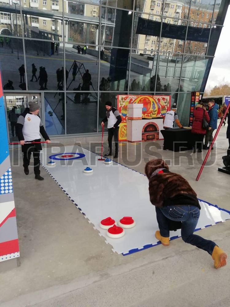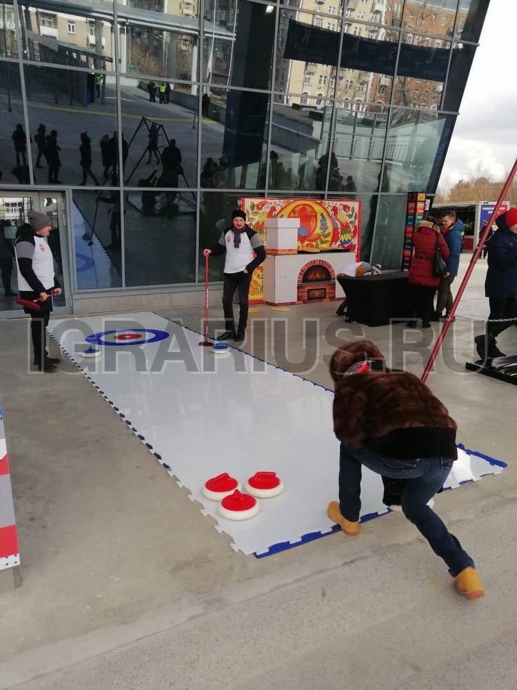 Вашему, внимаю предлагается выездной аттракцион керлинг. В нашем арсенале 10 метровая дорожка искусственного для, на которой Вы сможете не только потренировать свои навыки владения камнями и щетками, но и при необходимости провести мини турнир у себя в офисе или на любой открытой площадке, главное, что бы она была ровная. Наши опытные инструктора не только помогут в организации соревнований, но и смогут обучить технике броска, правильному скольжению и уверенному свипу.