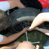 Аттракцион на слаженную командную работу. Задача на специально оборудованном автомобильном стенде поменять колеса быстрее чем команда соперников. В зависимости от тематики вашего мероприятия мы можем напечатать баннер с изображением любого вида транспорта, на котором вы так же с успехом сможете поменять колеса.