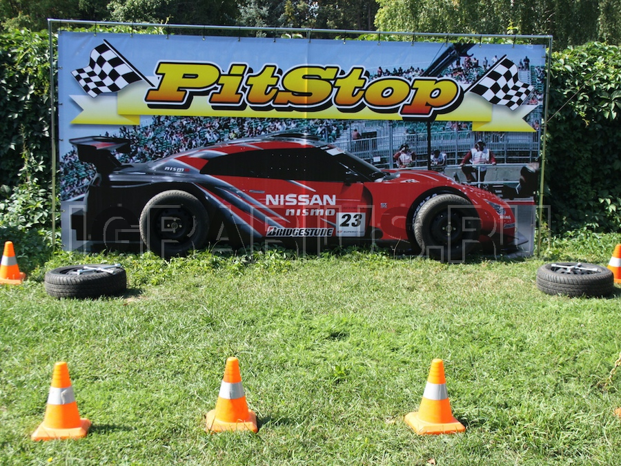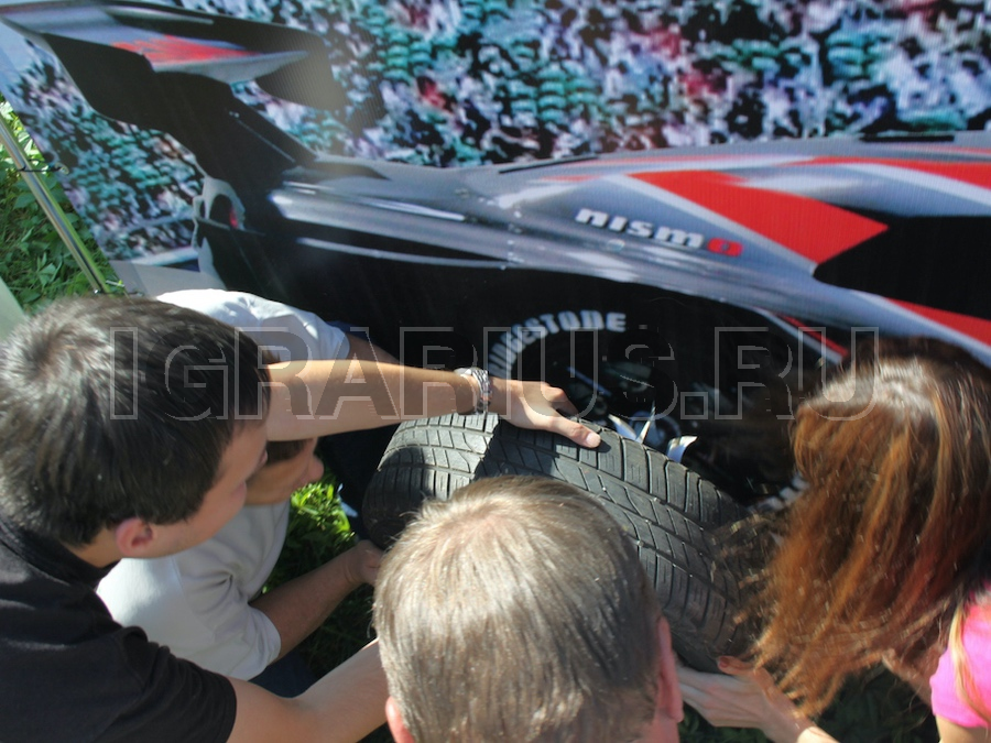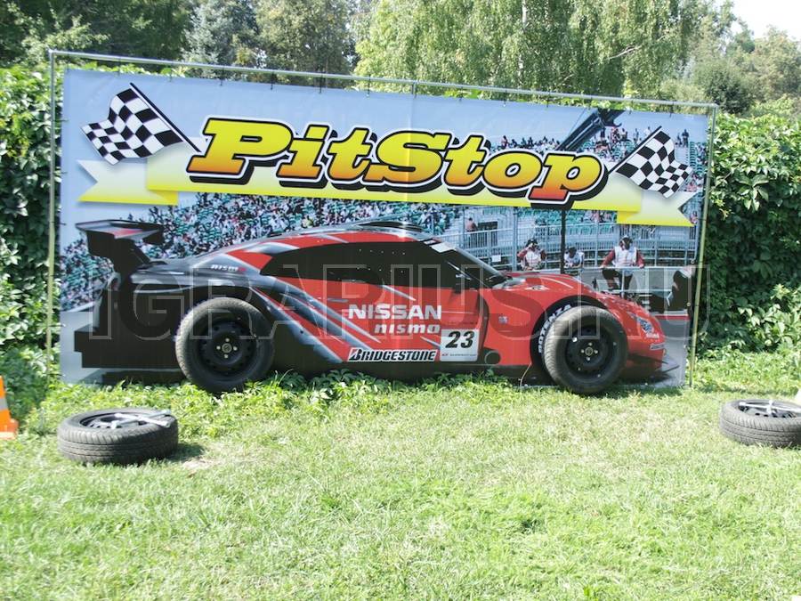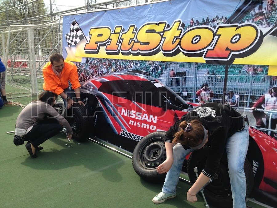 Аттракцион на слаженную командную работу. Задача на специально оборудованном автомобильном стенде поменять колеса быстрее чем команда соперников. В зависимости от тематики вашего мероприятия мы можем напечатать баннер с изображением любого вида транспорта, на котором вы так же с успехом сможете поменять колеса.
